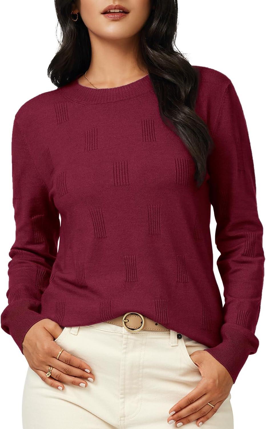 Arach&Cloz Women’s Soft Knit Sweater Fall Dressy Casual Pullover Tops(A-dark Red)
