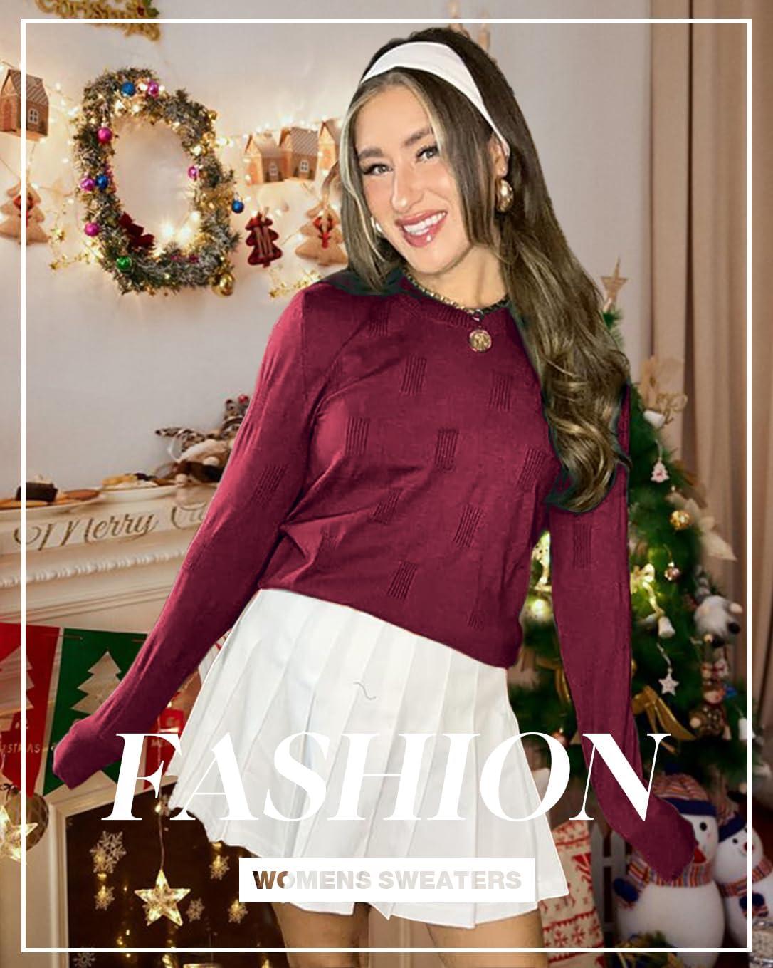 Arach&Cloz Women's Soft Knit Sweater Fall Dressy Casual Pullover Tops(A-dark Red)