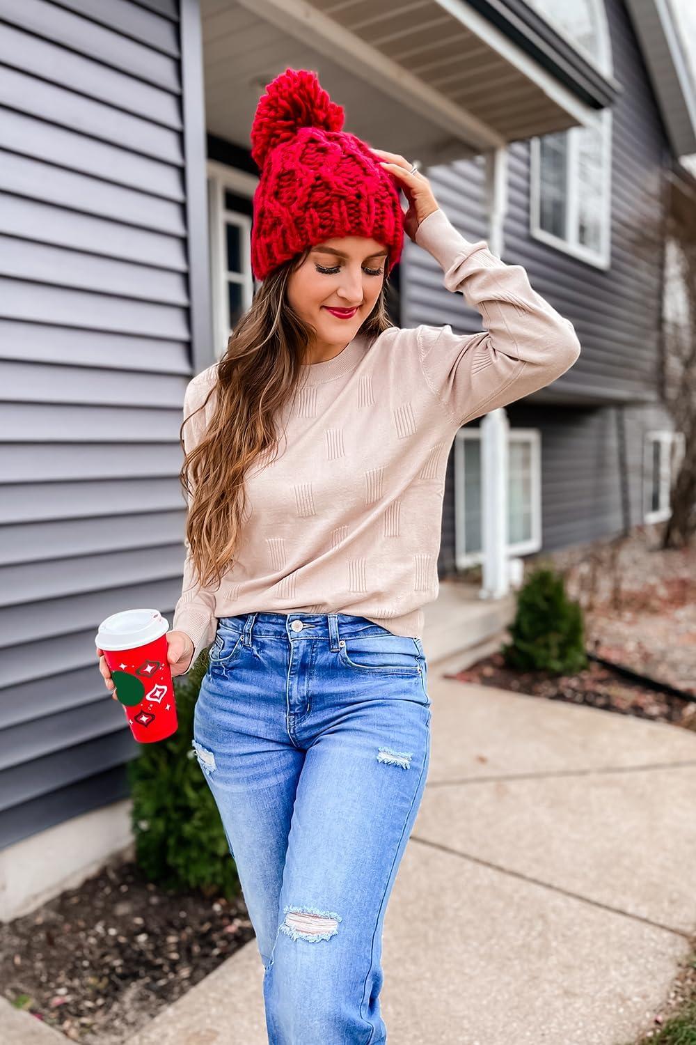 imageArachampampCloz Womens Soft Knit Sweater Fall Dressy Casual Pullover TopsAdusty Rose
