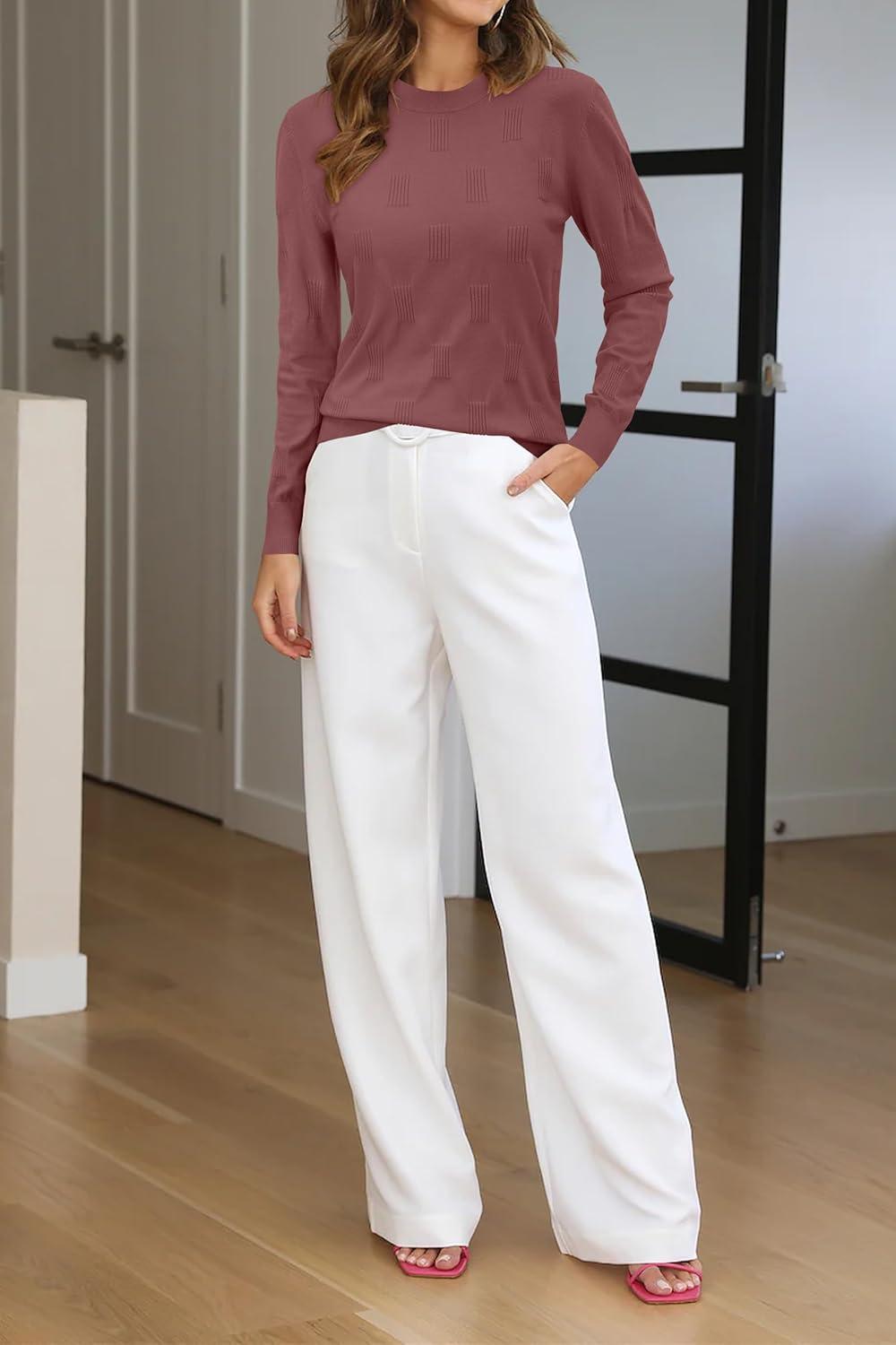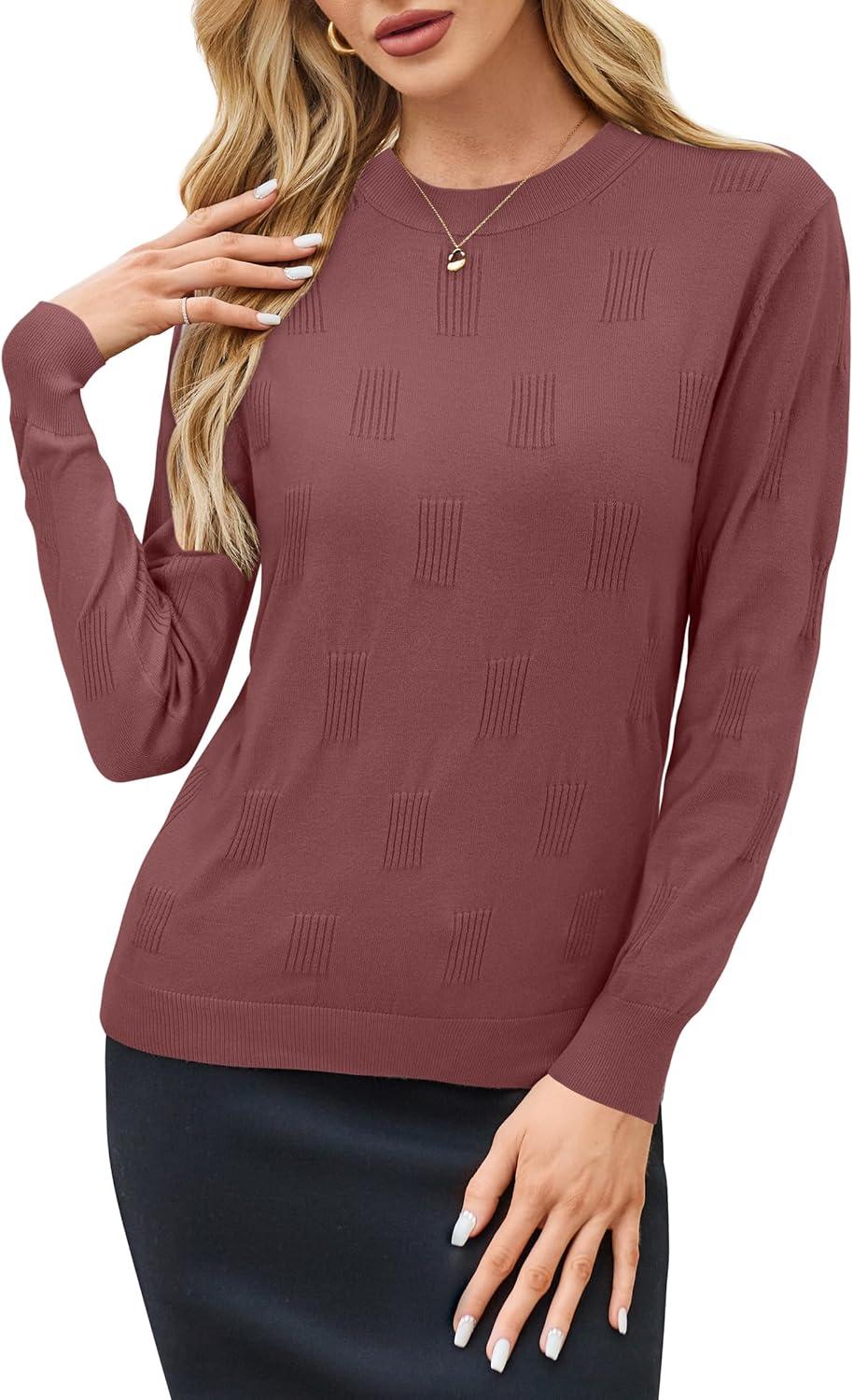 Arach&Cloz Women’s Soft Knit Sweater Fall Dressy Casual Pullover Tops(A-dark Rose)
