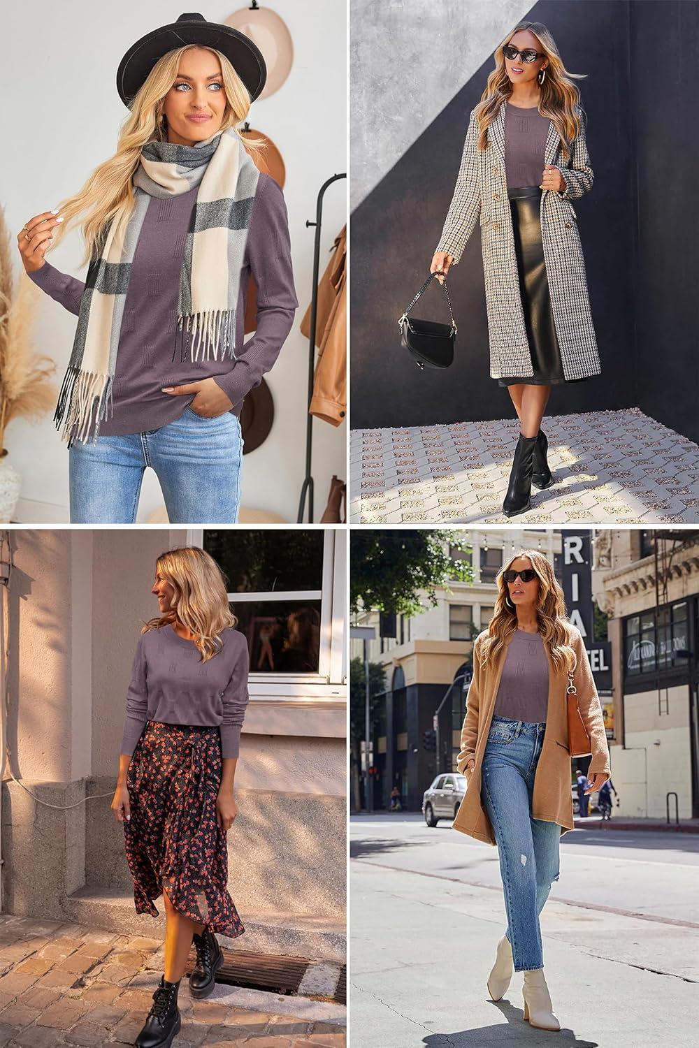 Arach&Cloz Women’s Soft Knit Sweater Fall Dressy Casual Pullover Tops(A-gray Purple)