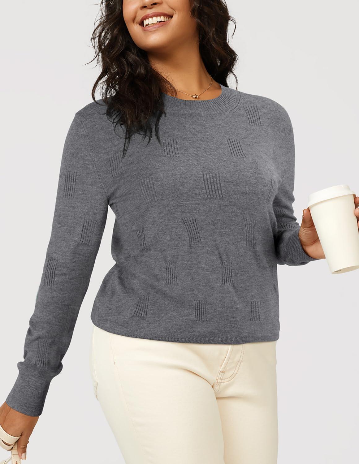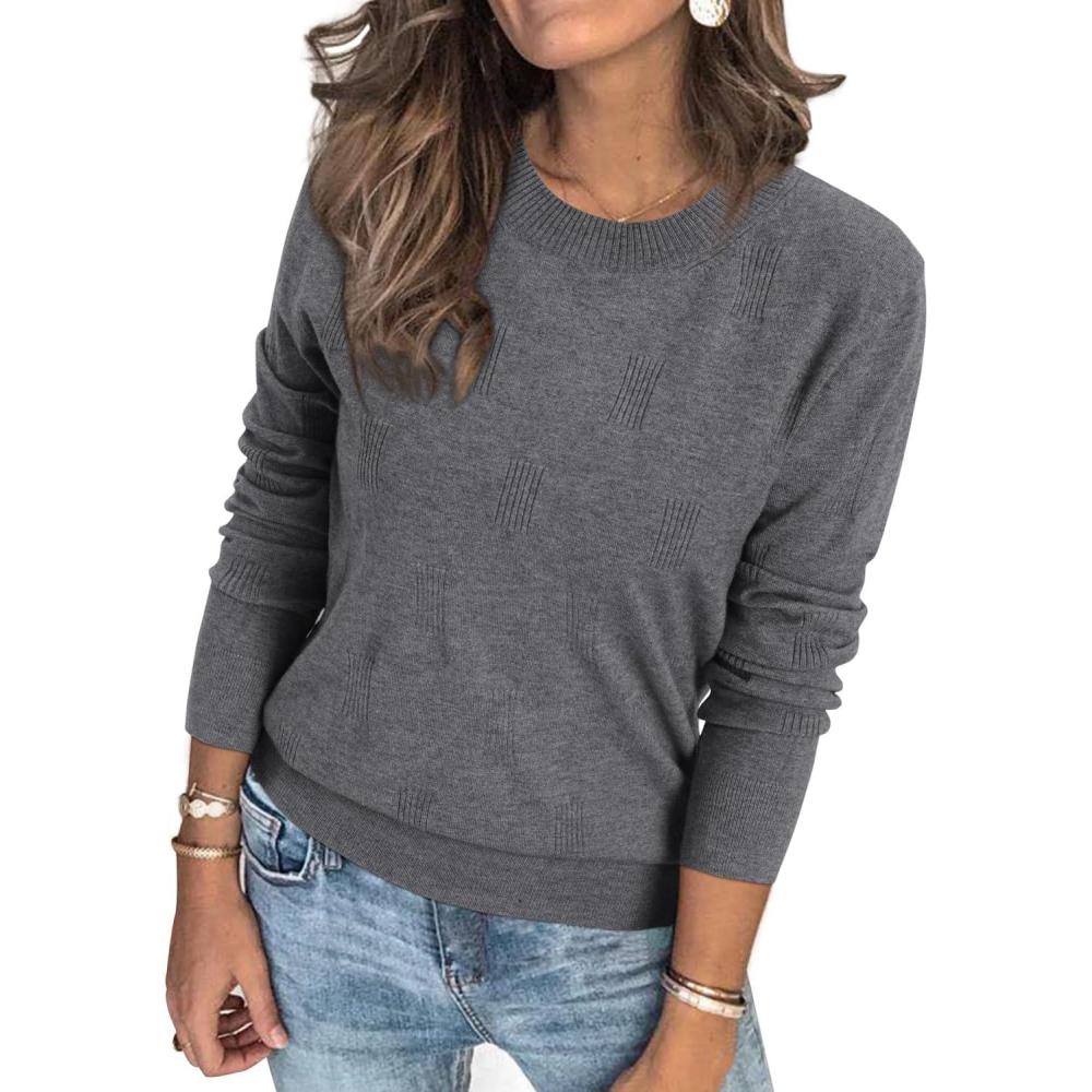 Arach&Cloz Women’s Soft Knit Sweater Fall Dressy Casual Pullover Tops(A-gray)