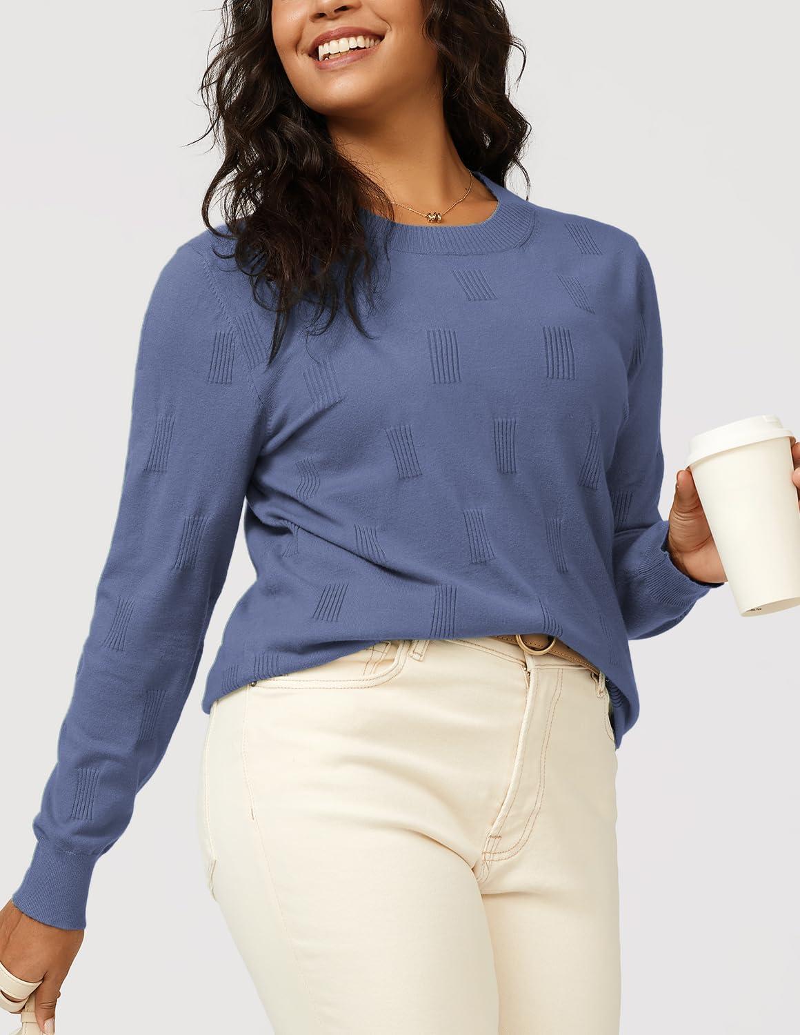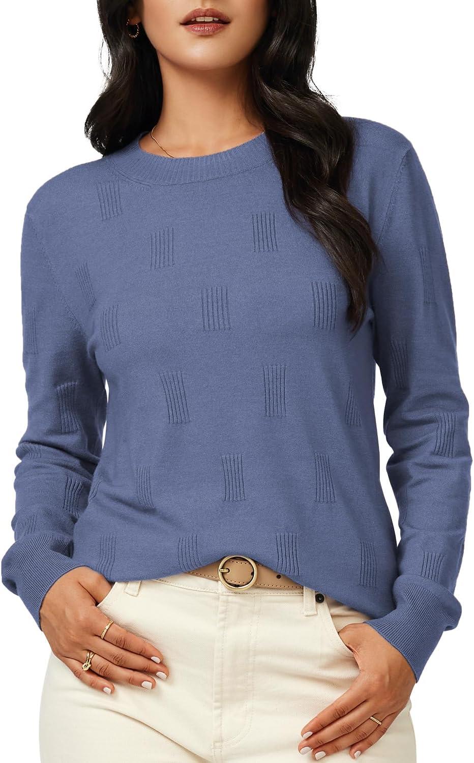 Arach&Cloz Women’s Soft Knit Sweater Fall Dressy Casual Pullover Tops(A-grey Blue)