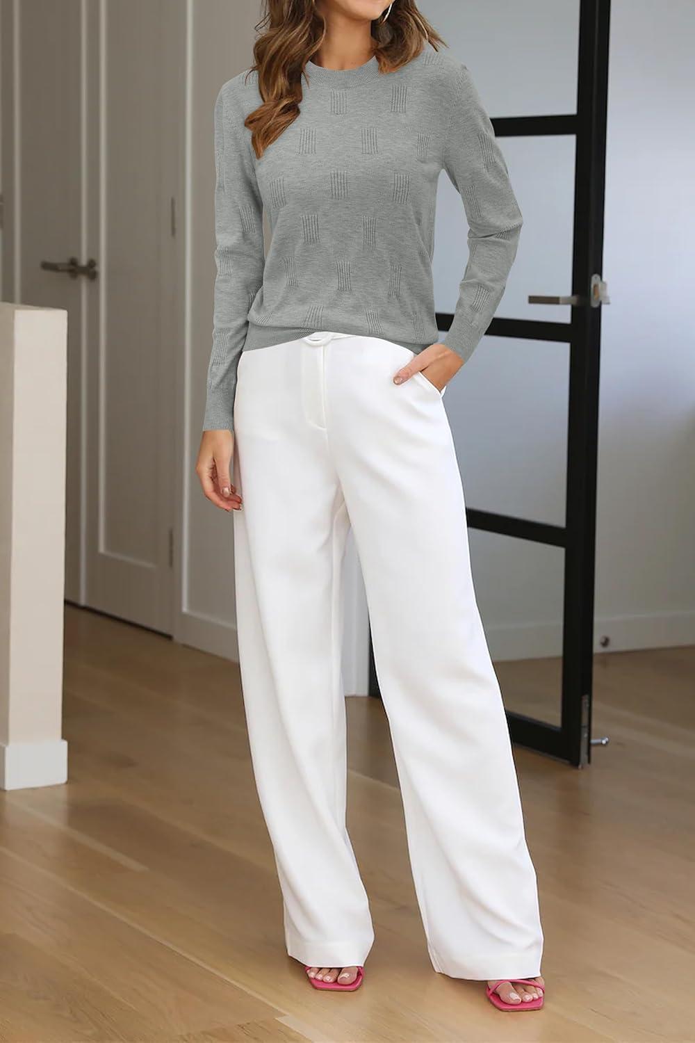 Arach&Cloz Women's Soft Knit Sweater Fall Dressy Casual Pullover Tops(A-light Grey)