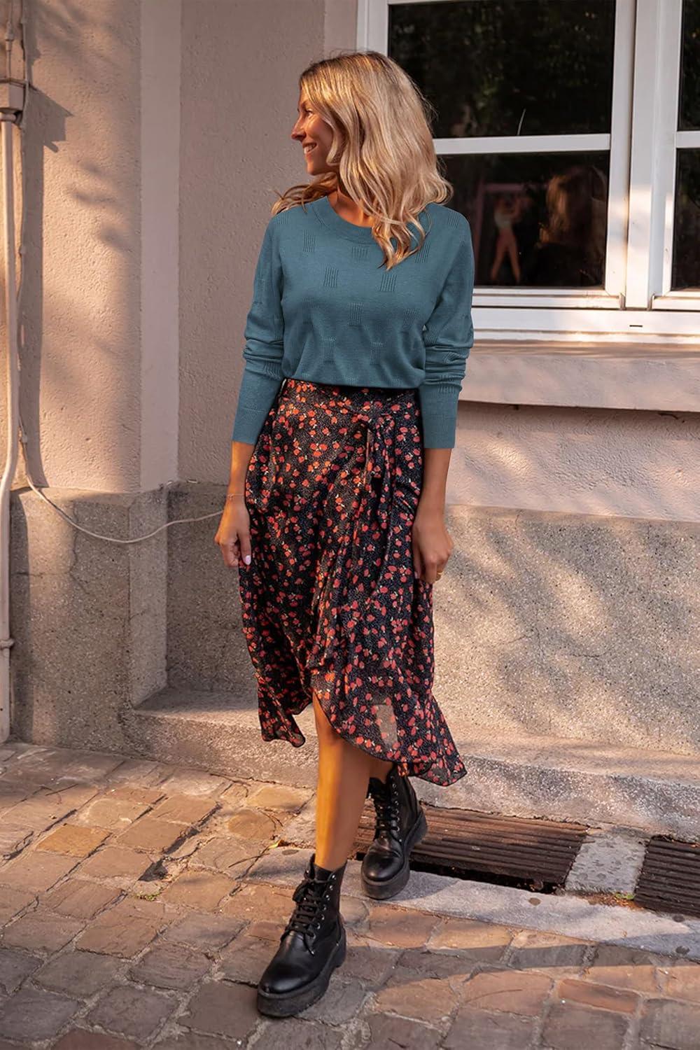 Arach&Cloz Women’s Soft Knit Sweater Fall Dressy Casual Pullover Tops(A-nebulas Blue)