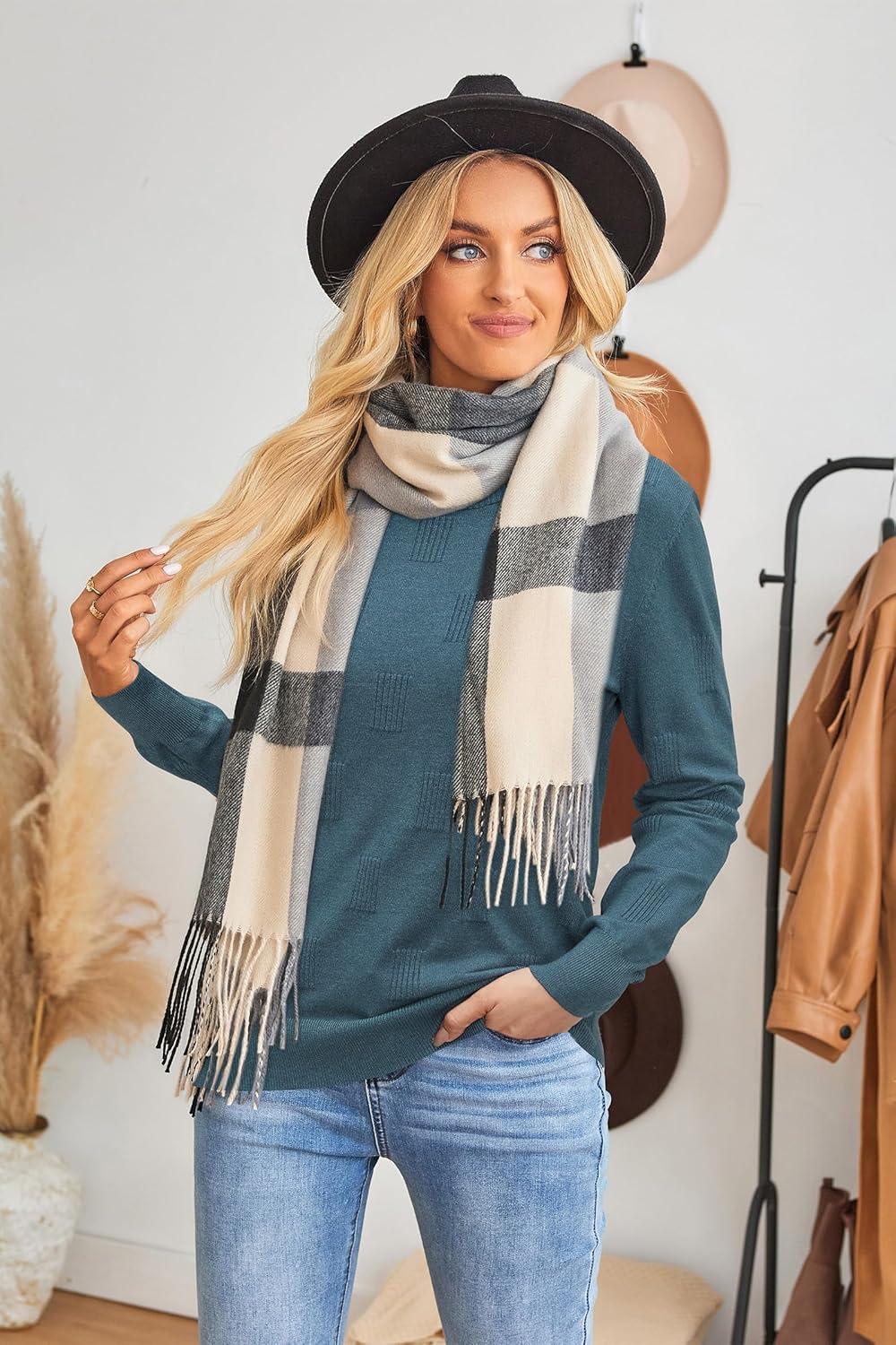 Arach&Cloz Women's Soft Knit Sweater Fall Dressy Casual Pullover Tops(A-nebulas Blue)