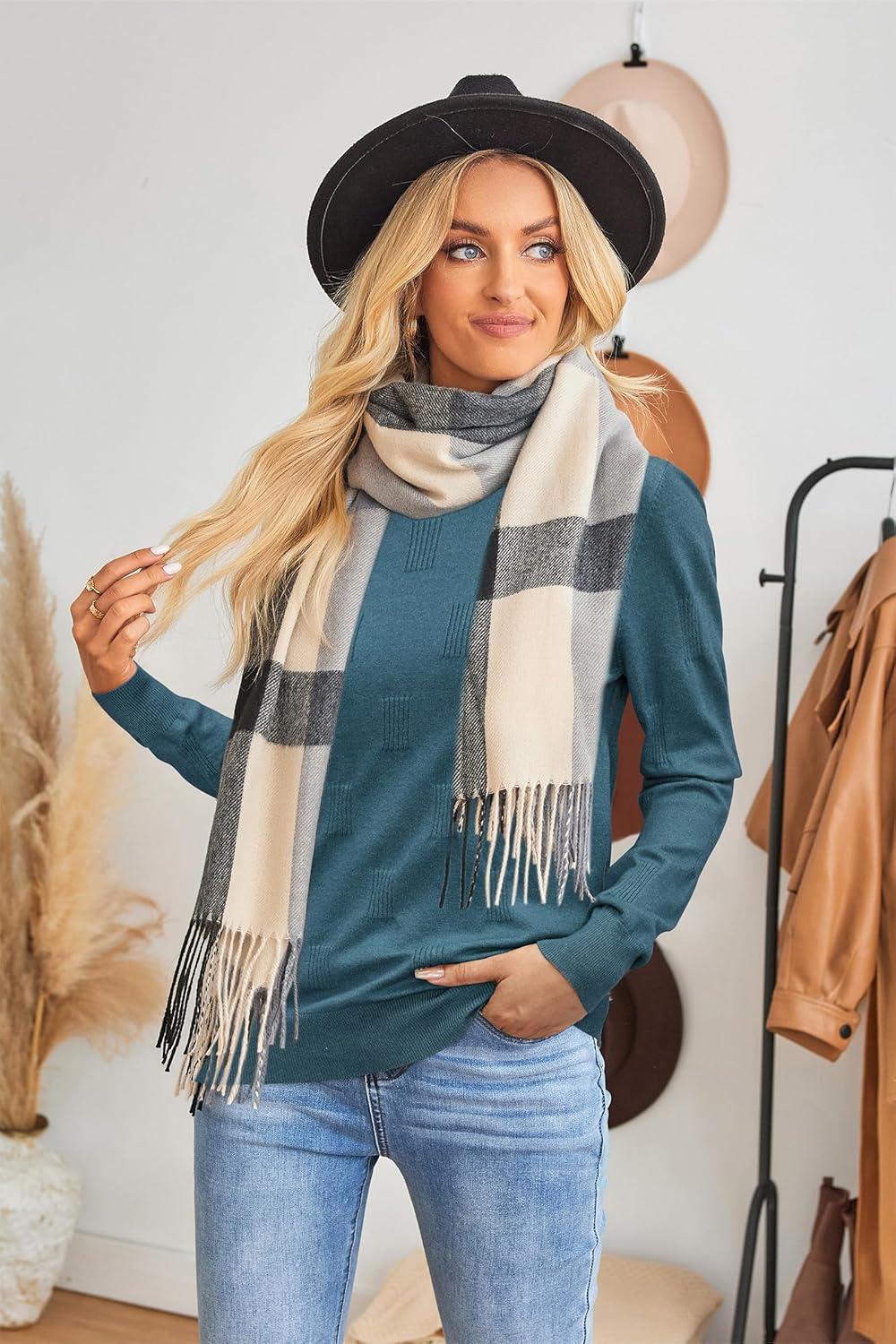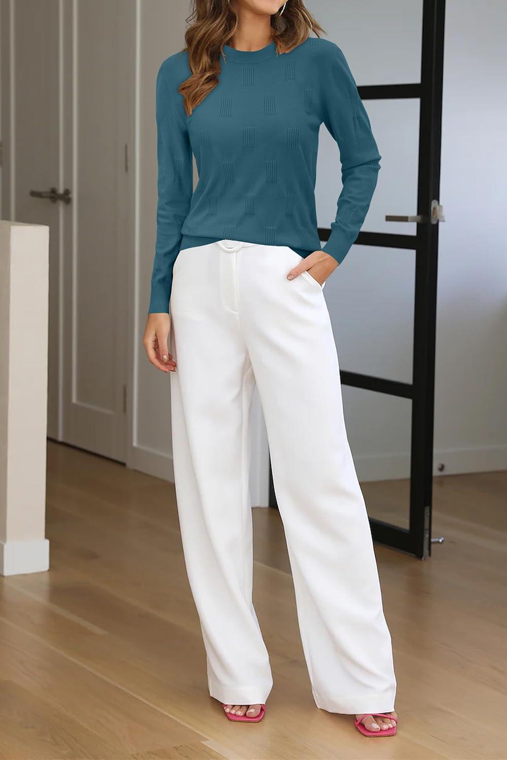 Arach&Cloz Women’s Soft Knit Sweater Fall Dressy Casual Pullover Tops(A-peacock Blue)