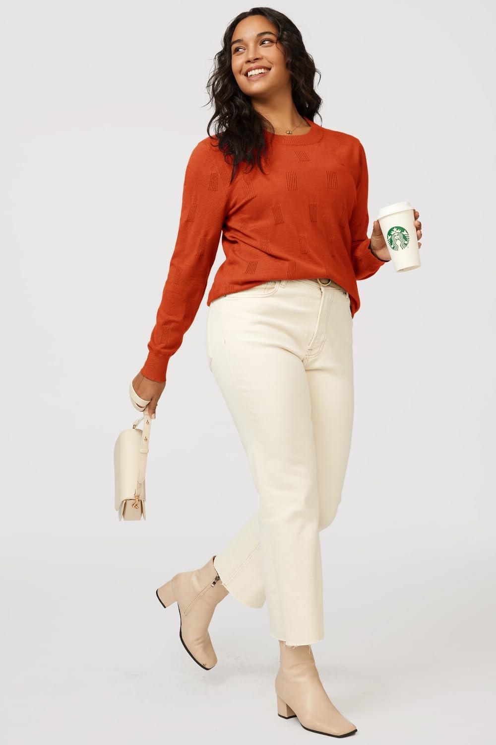 Arach&Cloz Women's Soft Knit Sweater Fall Dressy Casual Pullover Tops(A-rust)