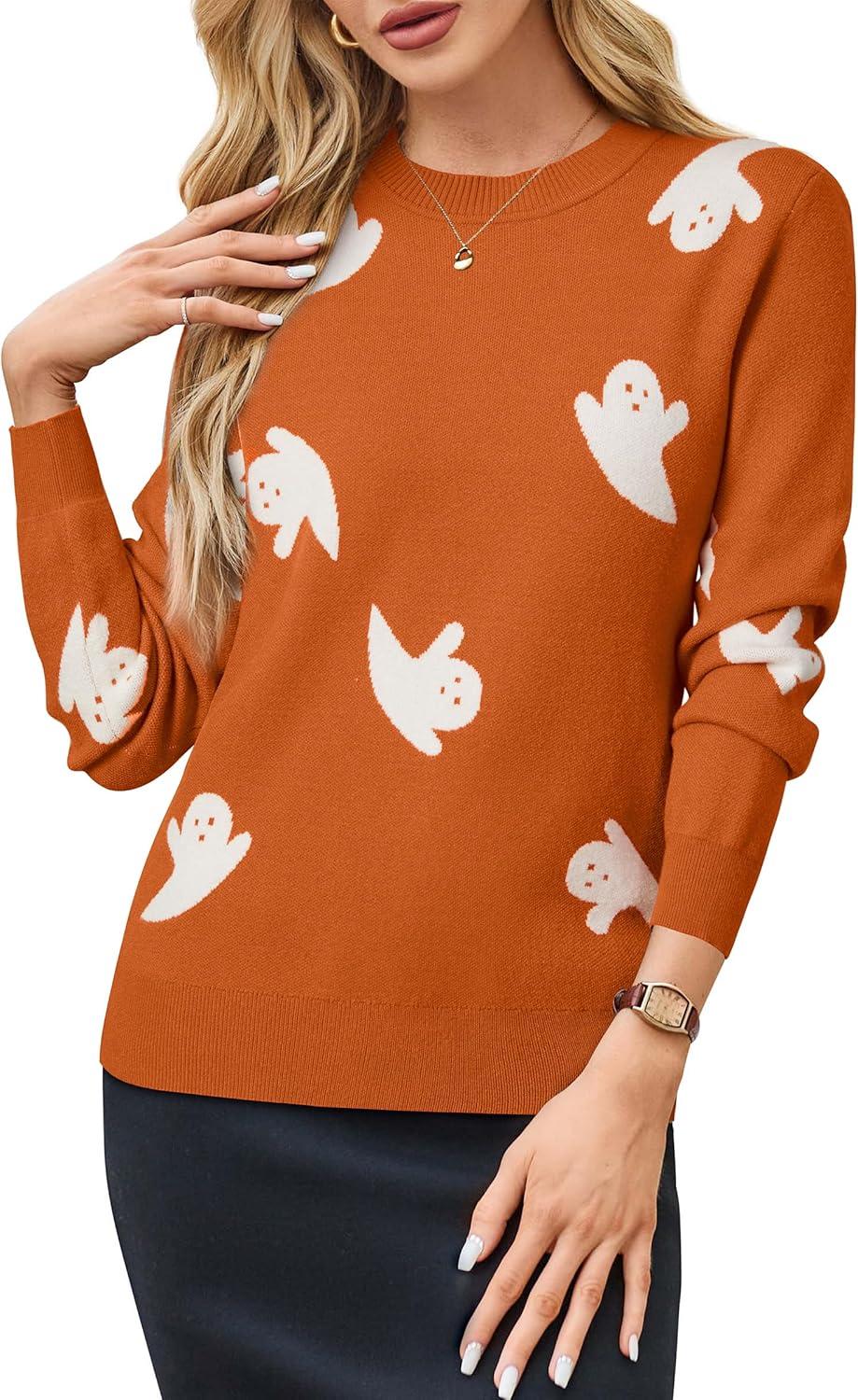 Arach&Cloz Women’s Soft Knit Sweater Fall Dressy Casual Pullover Tops(Halloween02)