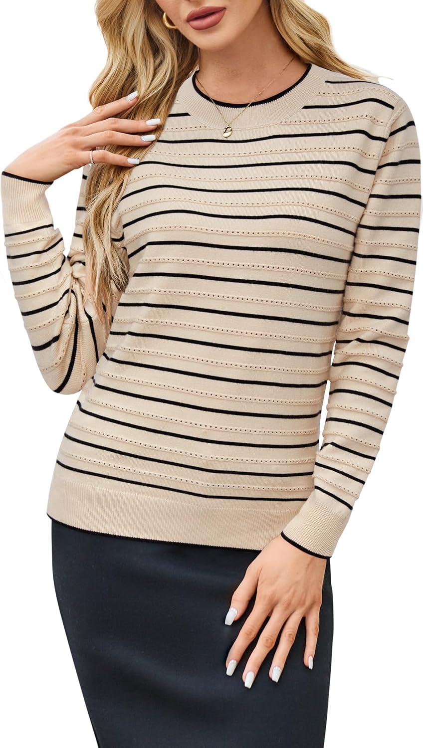 Arach&Cloz Women’s Soft Knit Sweater Fall Dressy Casual Pullover Tops(Striped Apricot Black)