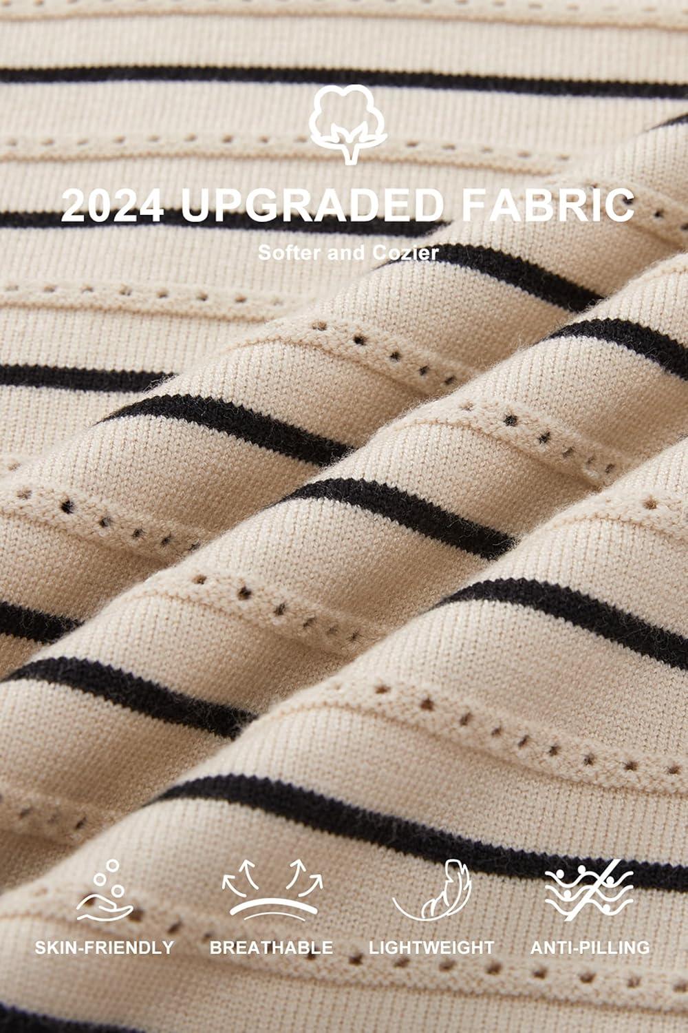 Arach&Cloz Women’s Soft Knit Sweater Fall Dressy Casual Pullover Tops(Striped Black White)