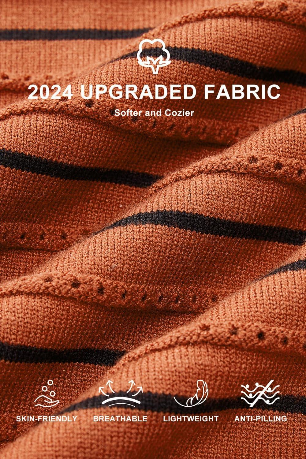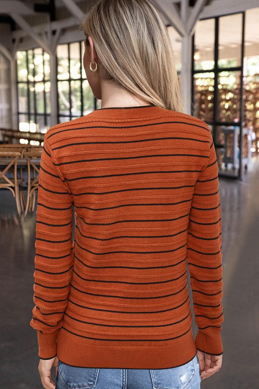 Arach&Cloz Women's Soft Knit Sweater Fall Dressy Casual Pullover Tops(Striped Pumpkin Black)
