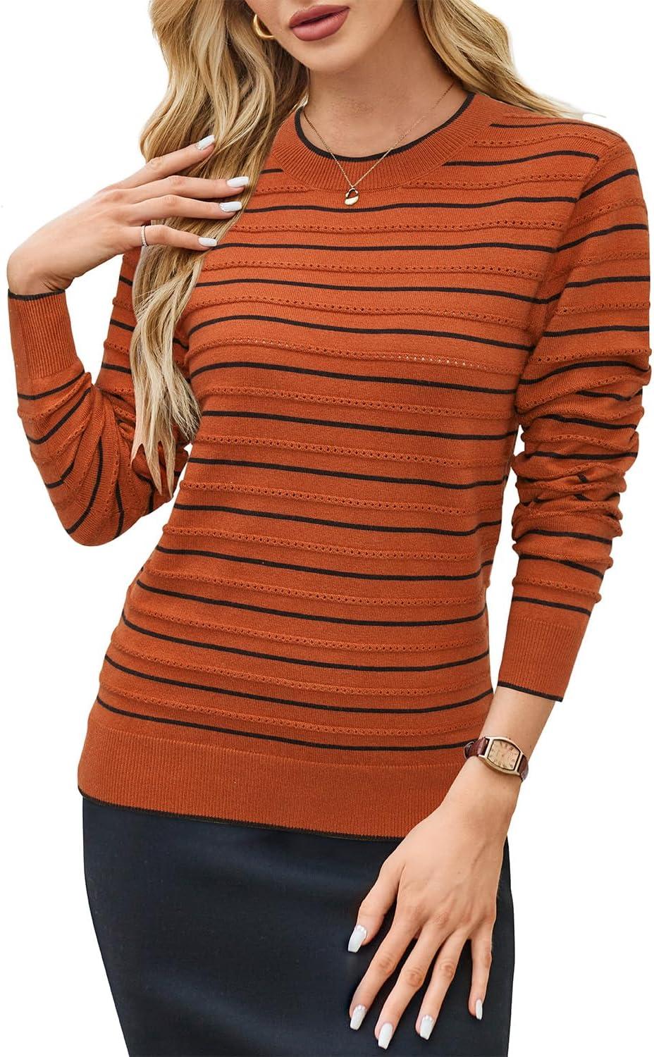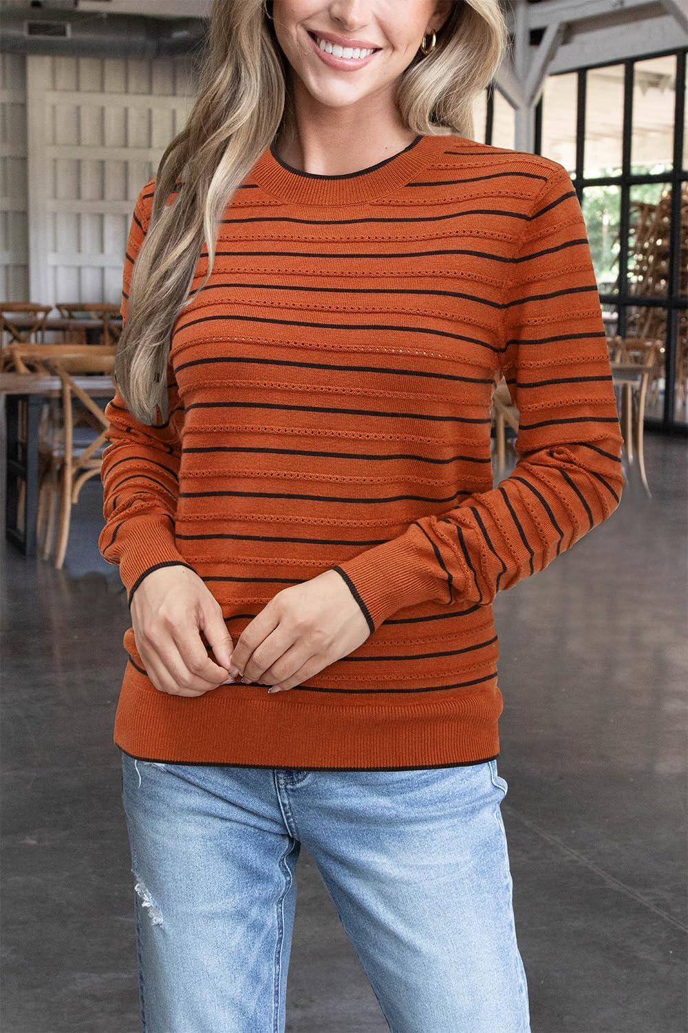 Arach&Cloz Women’s Soft Knit Sweater Fall Dressy Casual Pullover Tops(Striped Pumpkin Black)