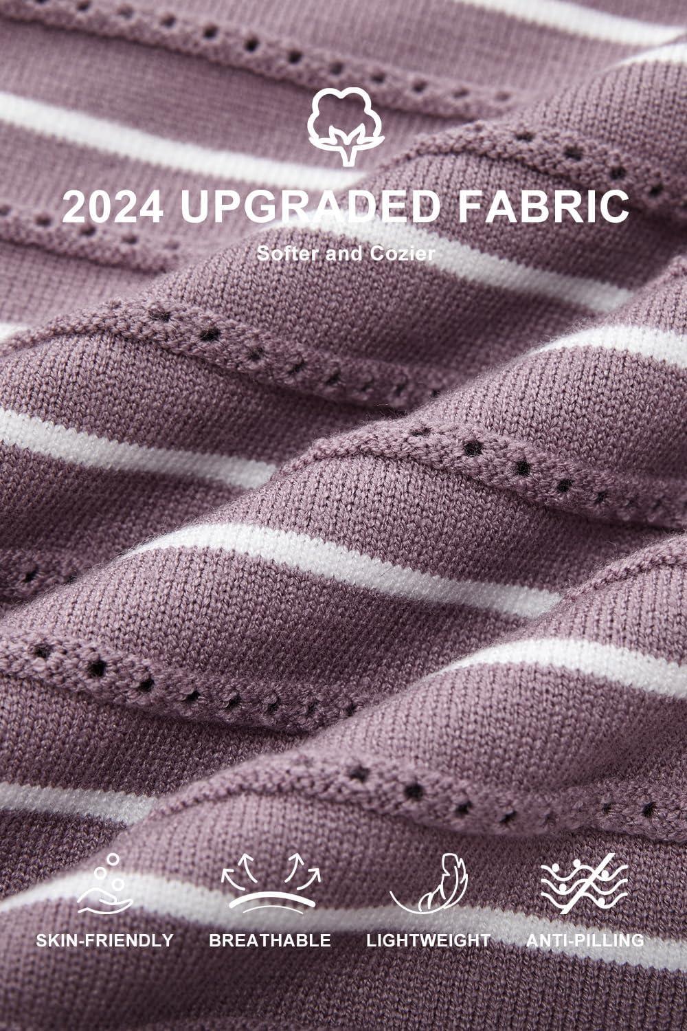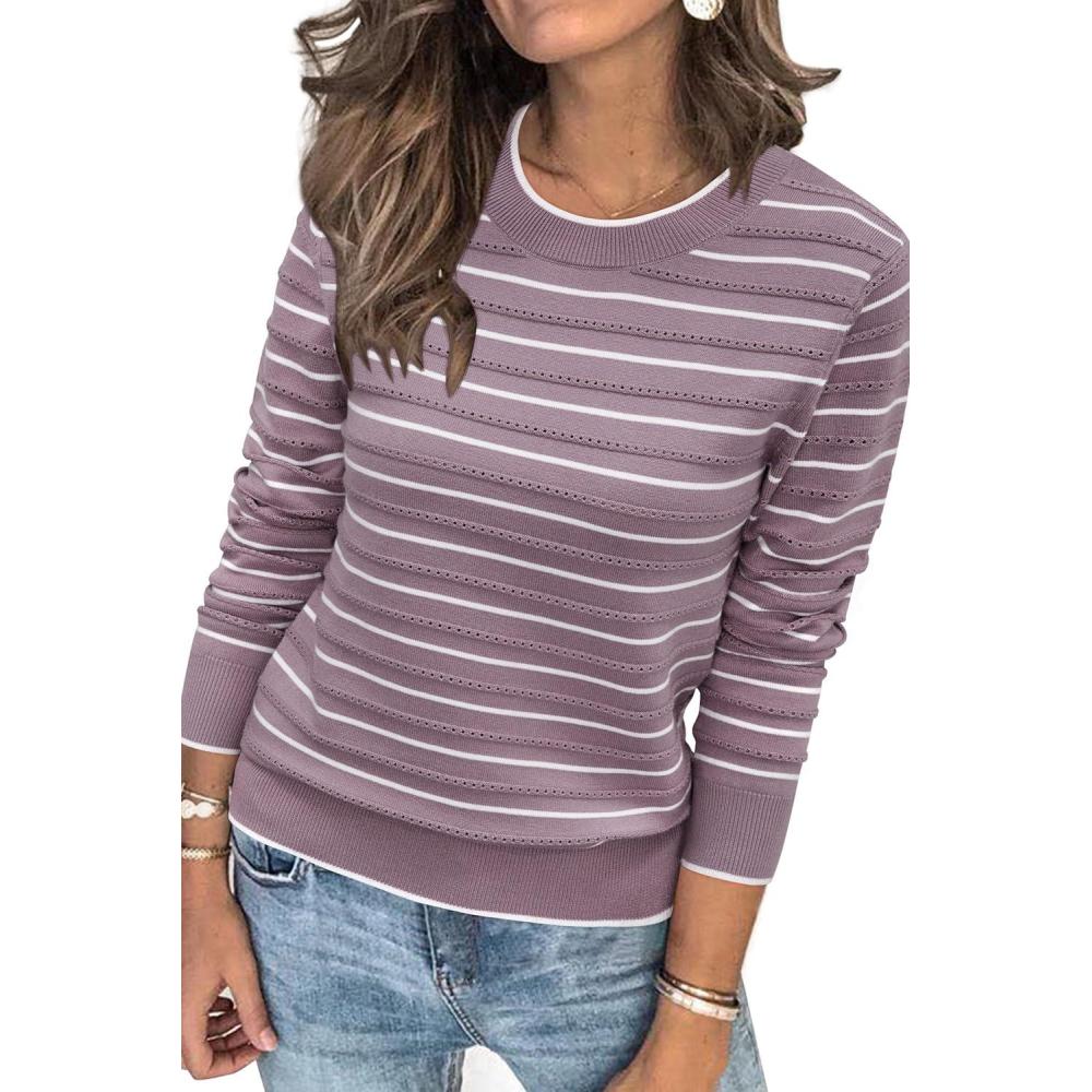Arach&Cloz Women's Soft Knit Sweater Fall Dressy Casual Pullover Tops(Striped Purple White)