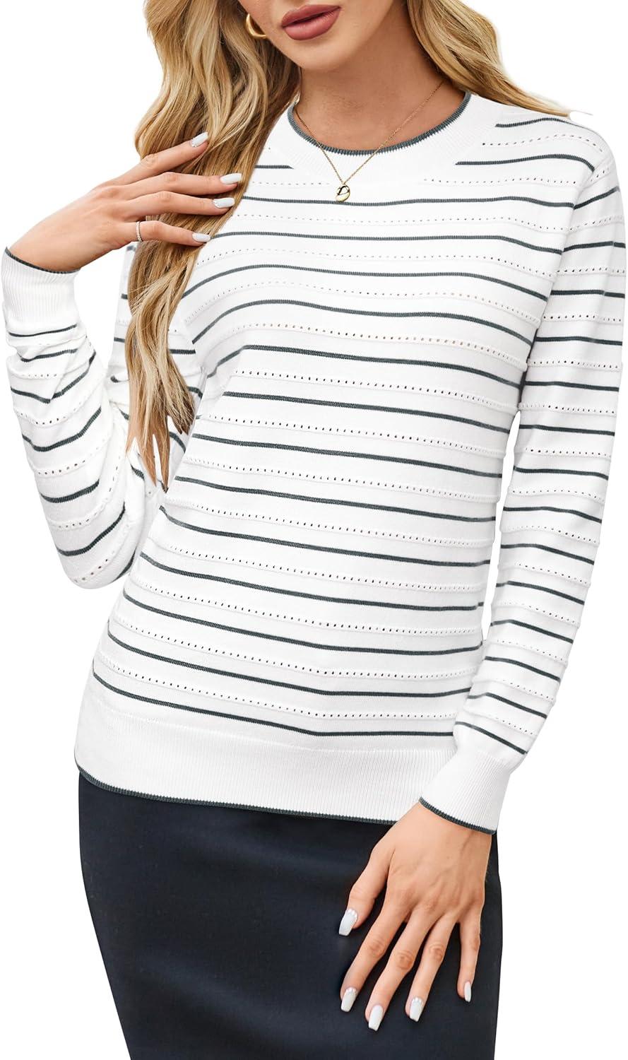 Arach&Cloz Women’s Soft Knit Sweater Fall Dressy Casual Pullover Tops(Striped White Black)