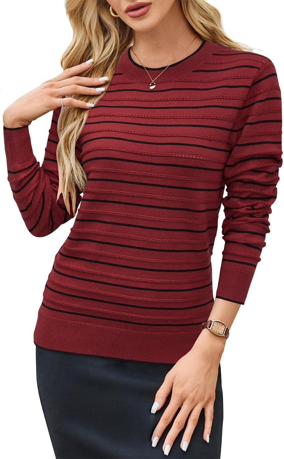 Arach&Cloz Women’s Soft Knit Sweater Fall Dressy Casual Pullover Tops(Striped Wine Black)