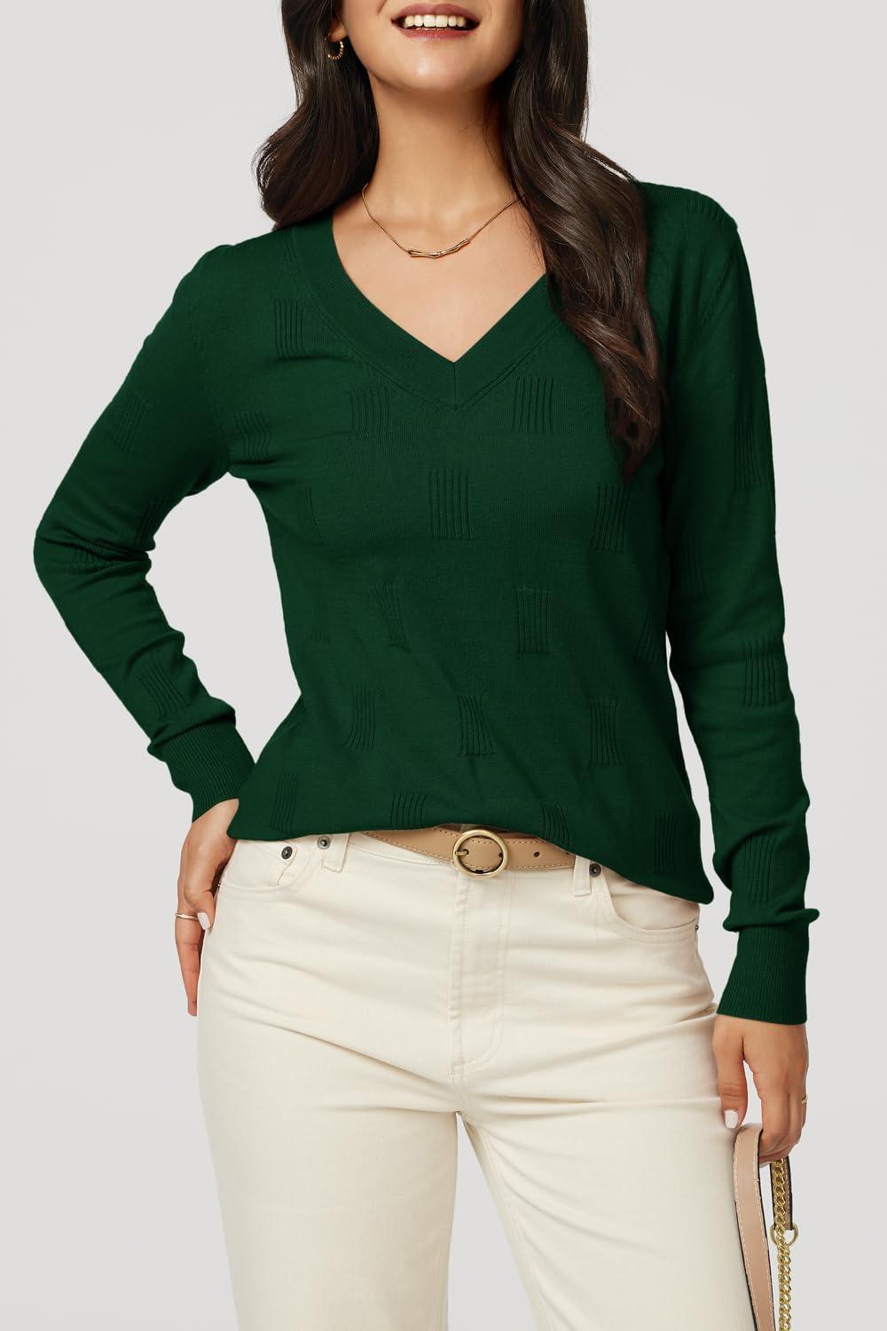 Arach&Cloz Women’s Soft V Neck Long Sleeve Fall Casual Regular Fit Sweater Tops(Green)