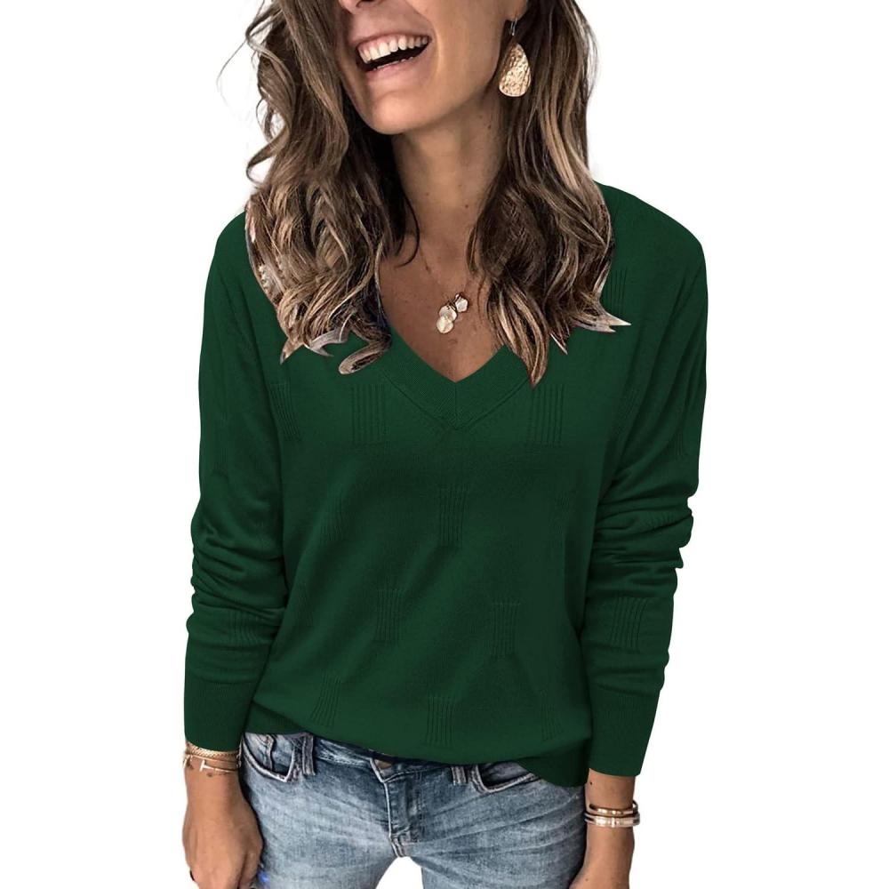 imageArachampCloz Womens Soft V Neck Long Sleeve Fall Casual Regular Fit Sweater TopsGreen