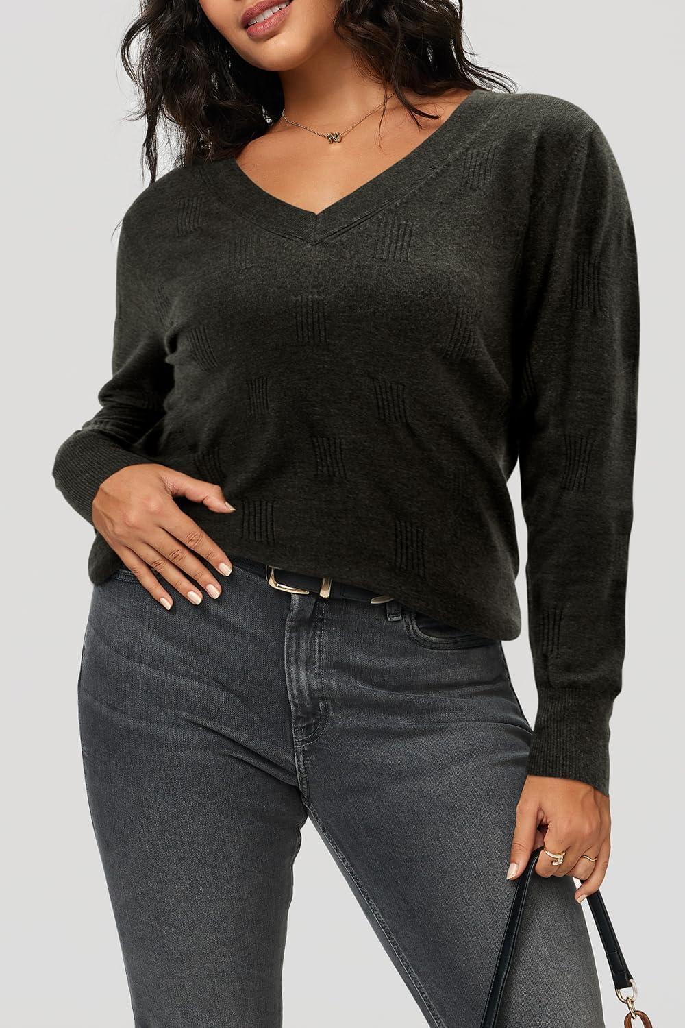 Arach&Cloz Women's Soft V Neck Long Sleeve Fall Casual Regular Fit Sweater Tops(Heather Black)