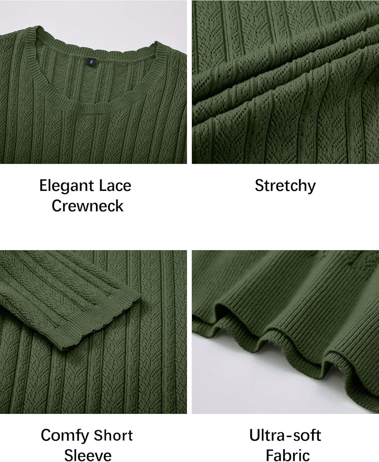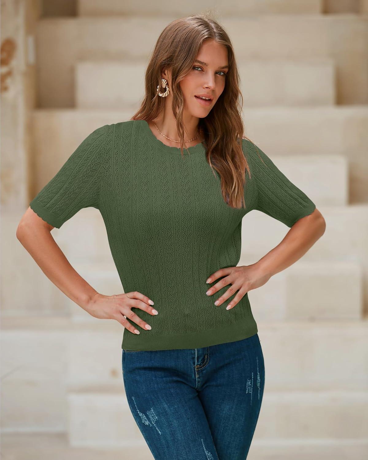 Arach&Cloz Women’s Spring Summer Scalloped Short Sleeve Tops Textured Shirts(Army Green)