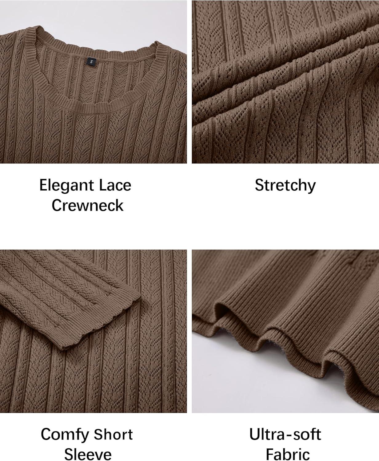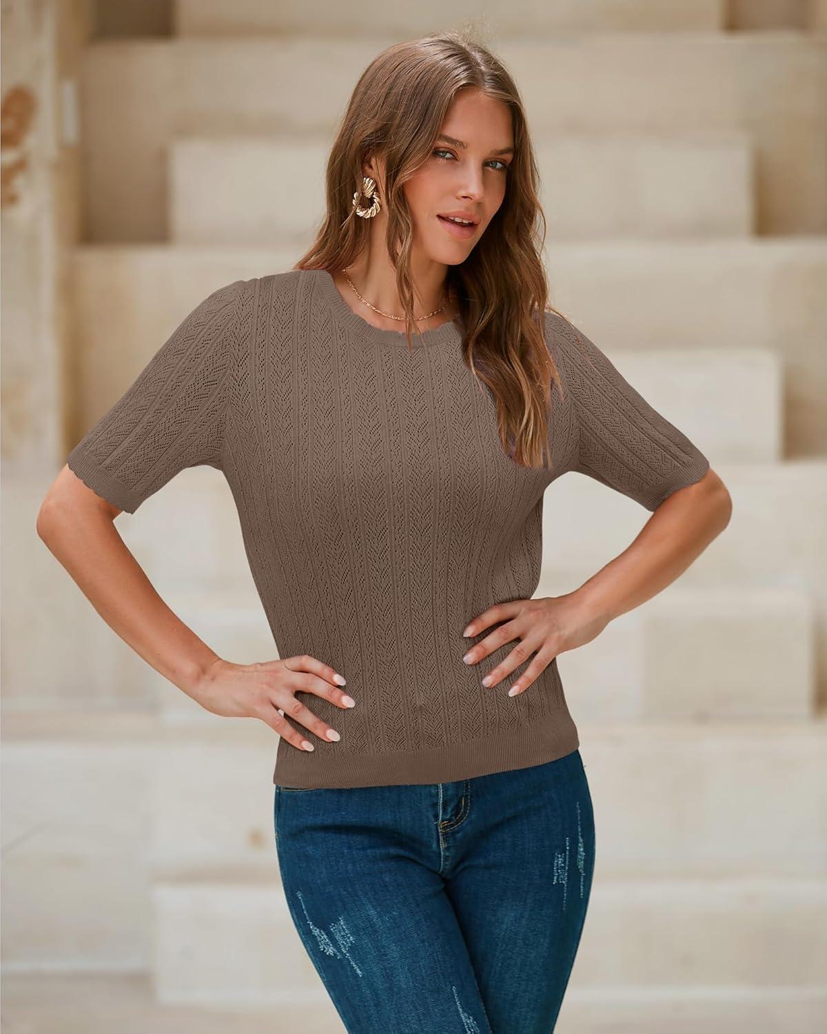 Arach&Cloz Women’s Spring Summer Scalloped Short Sleeve Tops Textured Shirts(Coffee)