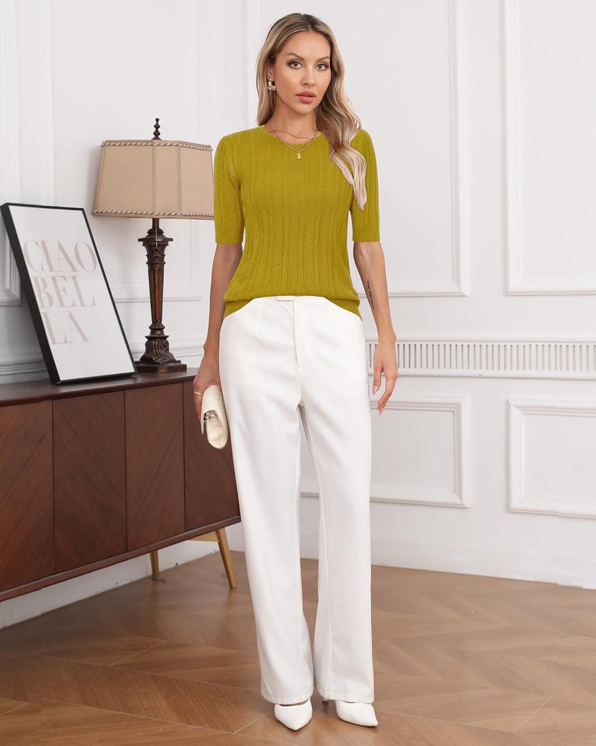 Arach&Cloz Women’s Spring Summer Scalloped Short Sleeve Tops Textured Shirts(Green)
