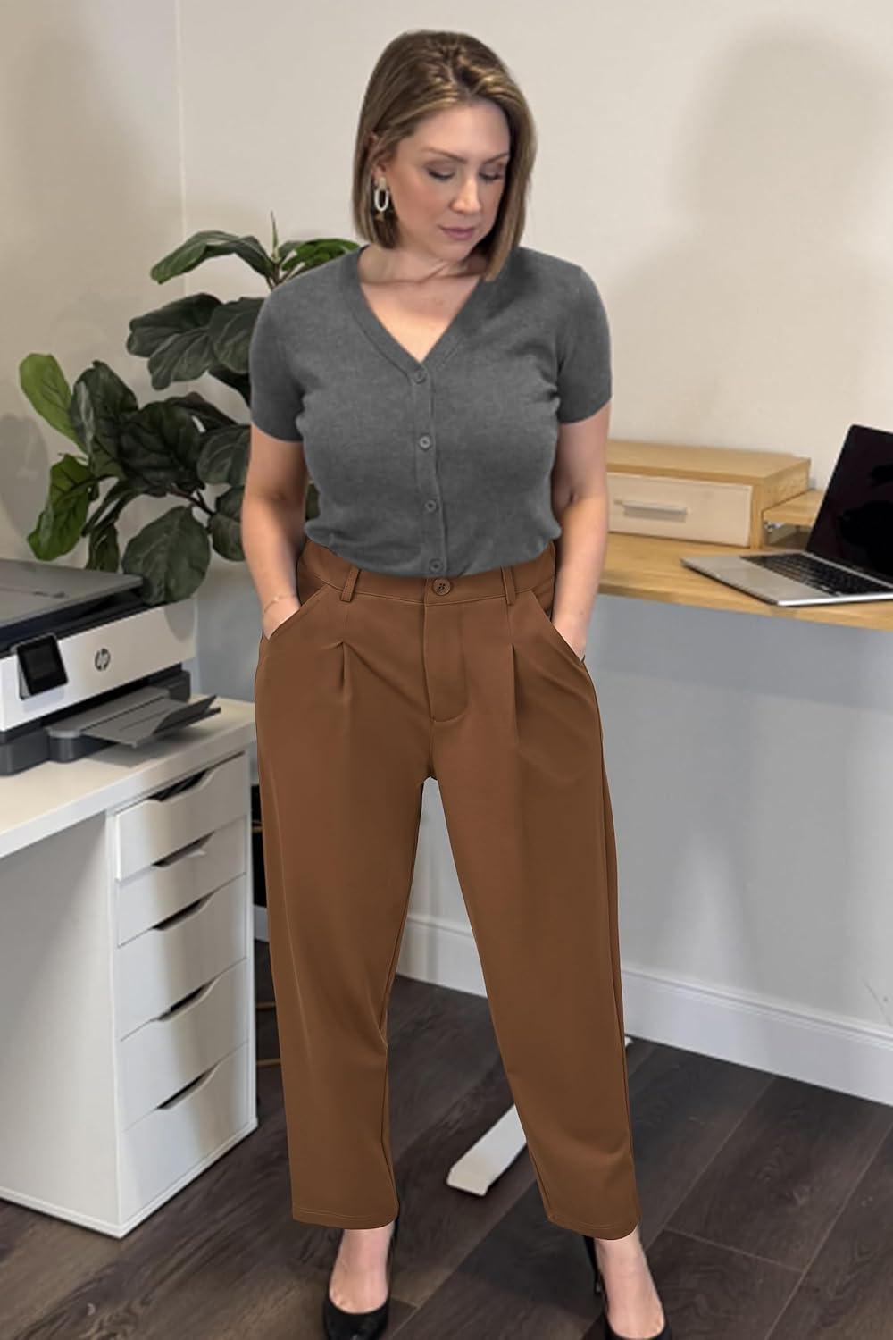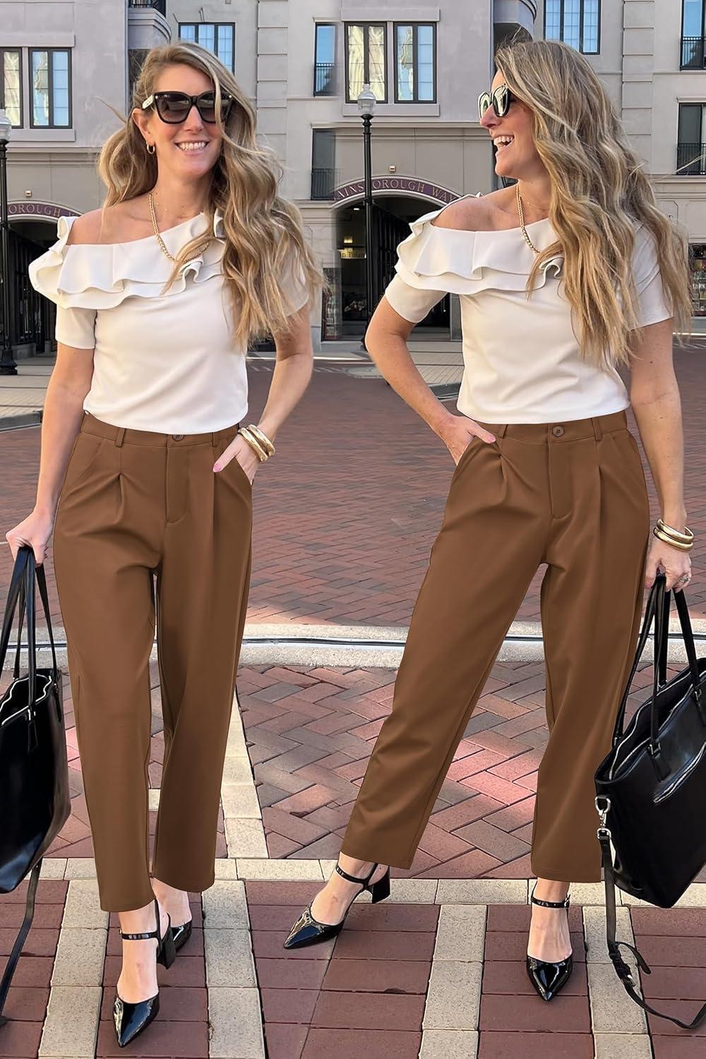 Arach&Cloz Women’s Stretch Wrinkle-Free Comfort Ankle Work Pants Fall 2025(Coffee)