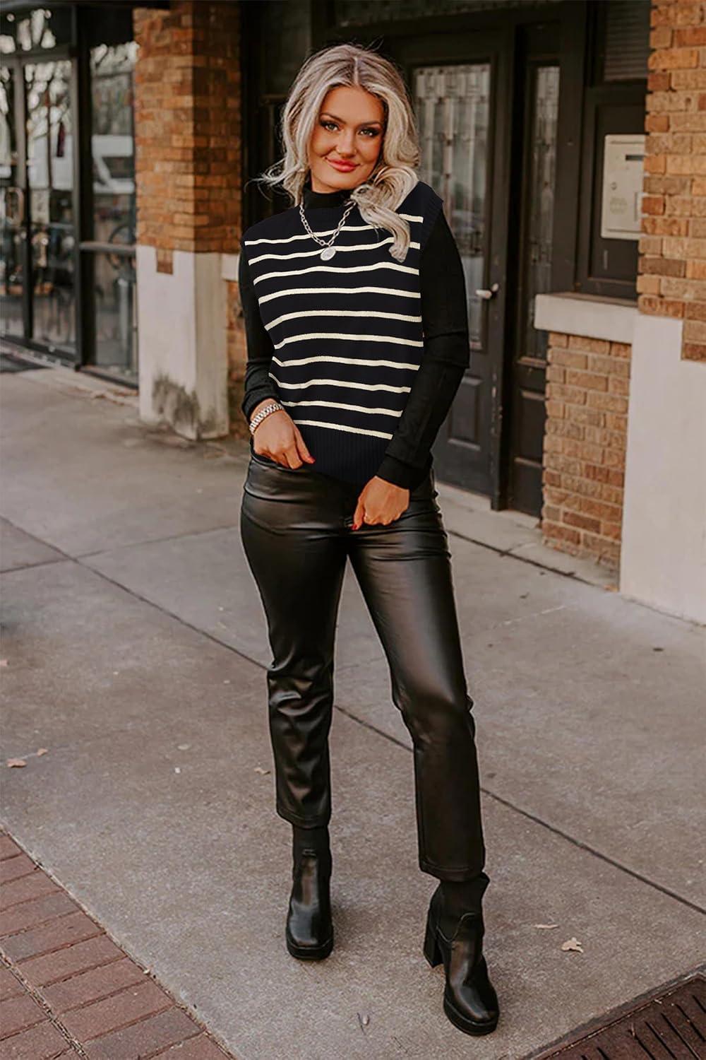 Arach&Cloz Womens Summer 2024 Sweater Vest Cap Sleeve Crew Neck Striped Fashion Casual Sleeveless Fall Tops Clothes(Black-apricot)