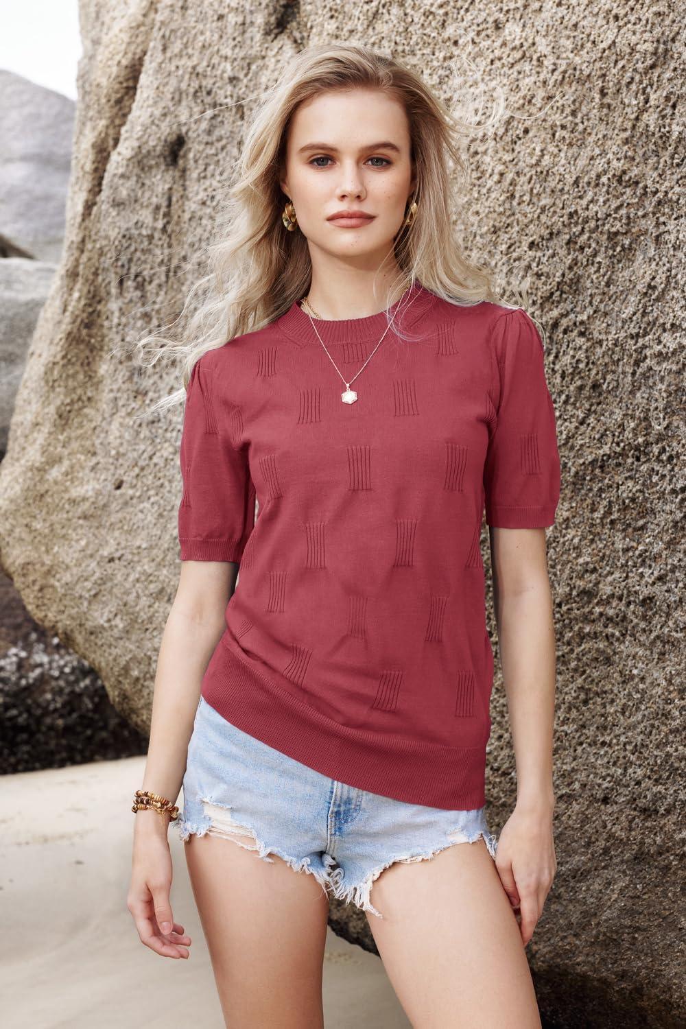 Arach&Cloz Women’s Summer Fall Lightweight Tops Short Sleeve Dressy Blouse(Dusty Red)