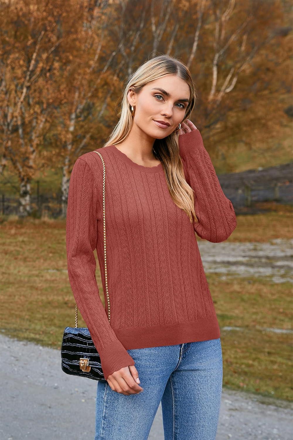 Arach&Cloz Women’s Summer Fall Scalloped Lace Cuff Crewneck Tops Textured Shirts(B-dusty Red)