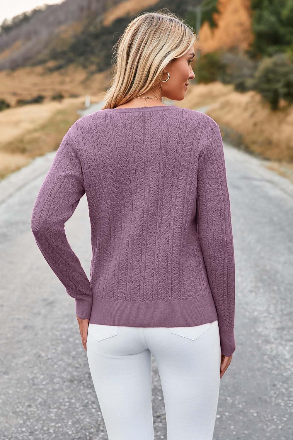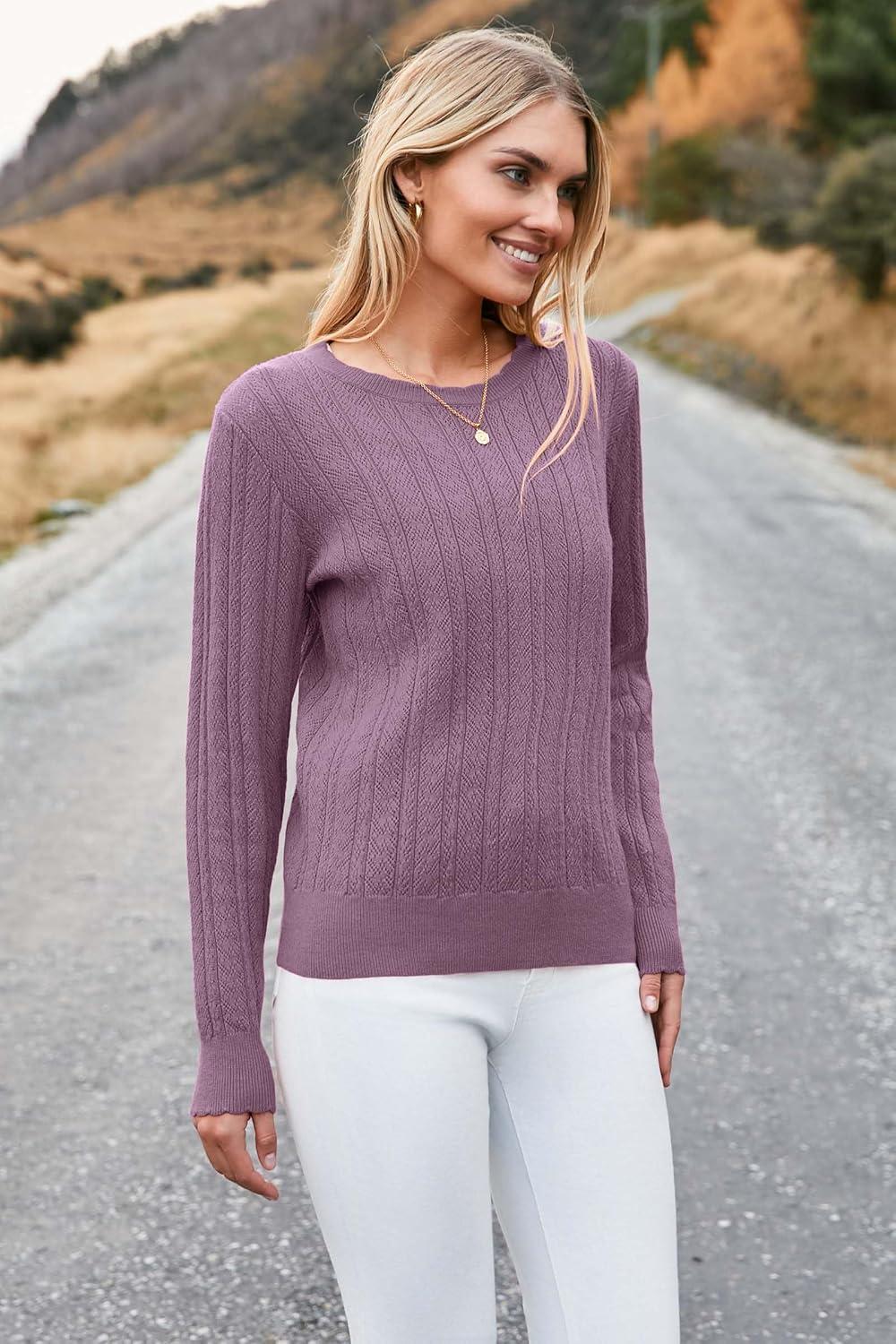 Arach&Cloz Women’s Summer Fall Scalloped Lace Cuff Crewneck Tops Textured Shirts(B-gray Purple)