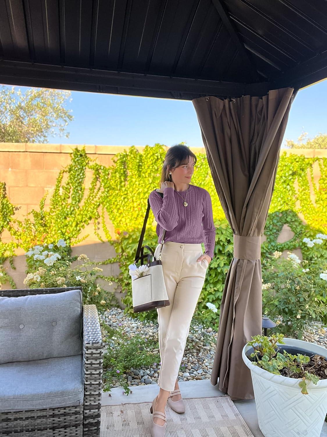 Be the first to review “Arach&Cloz Women’s Summer Fall Scalloped Lace Cuff Crewneck Tops Textured Shirts(B-gray Purple)”