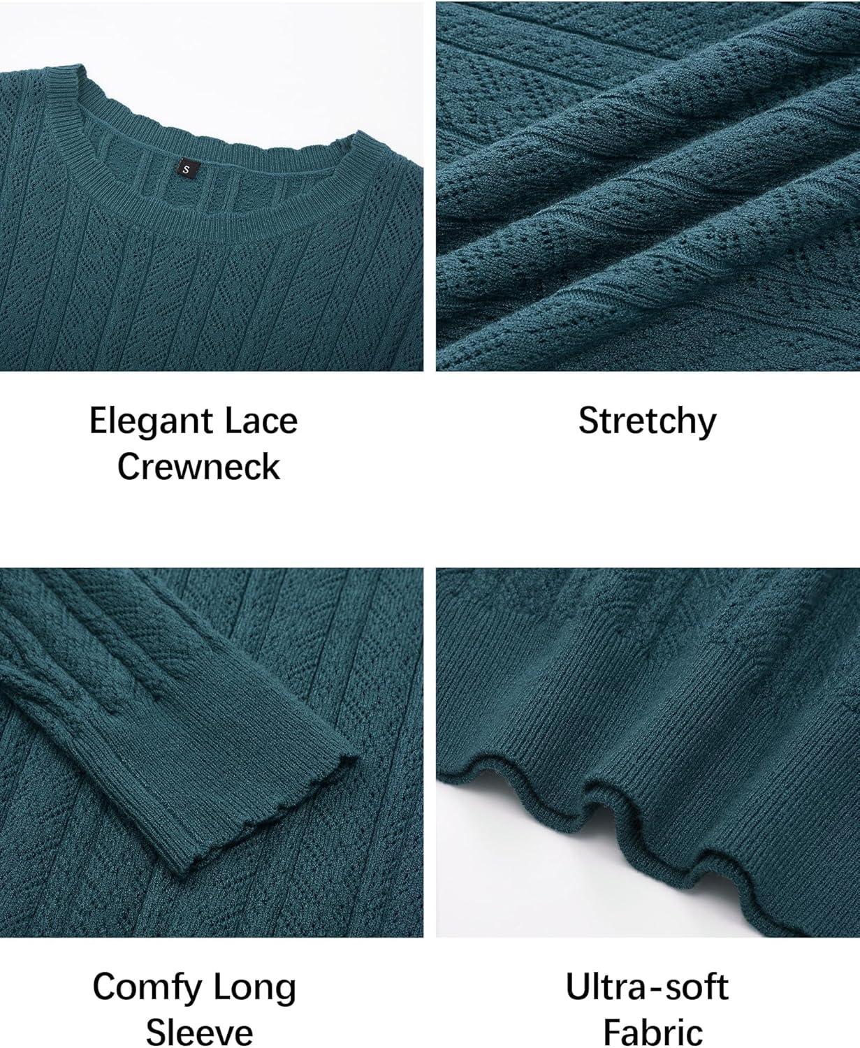 Arach&Cloz Women’s Summer Fall Scalloped Lace Cuff Crewneck Tops Textured Shirts(B-peacock Blue)