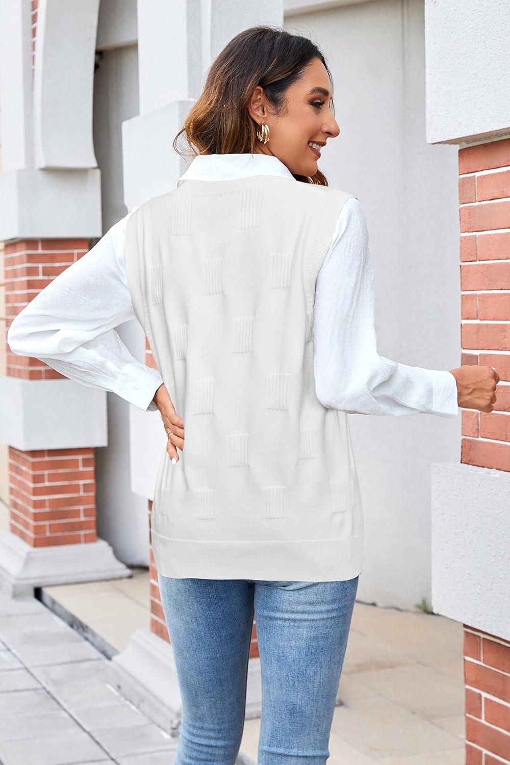 Arach&Cloz Womens Sweater Vest 2025 Fashion Sleeveless V Neck Business Casual Tank Knit Pullover Tops Spring Trendy(White)