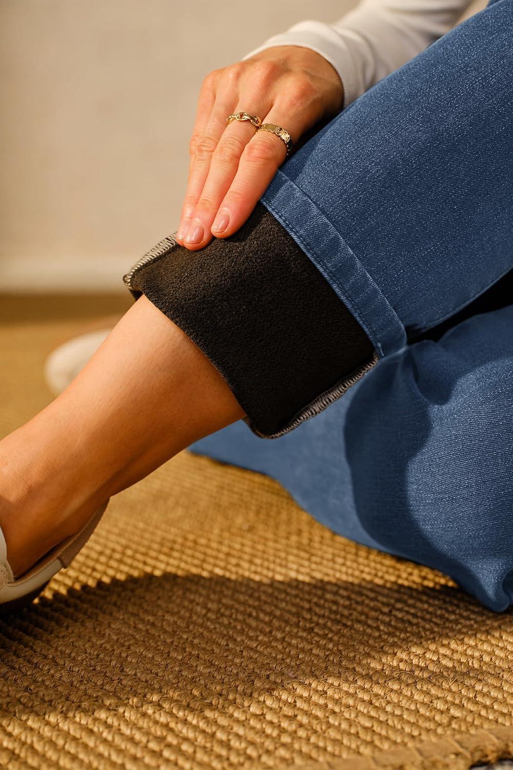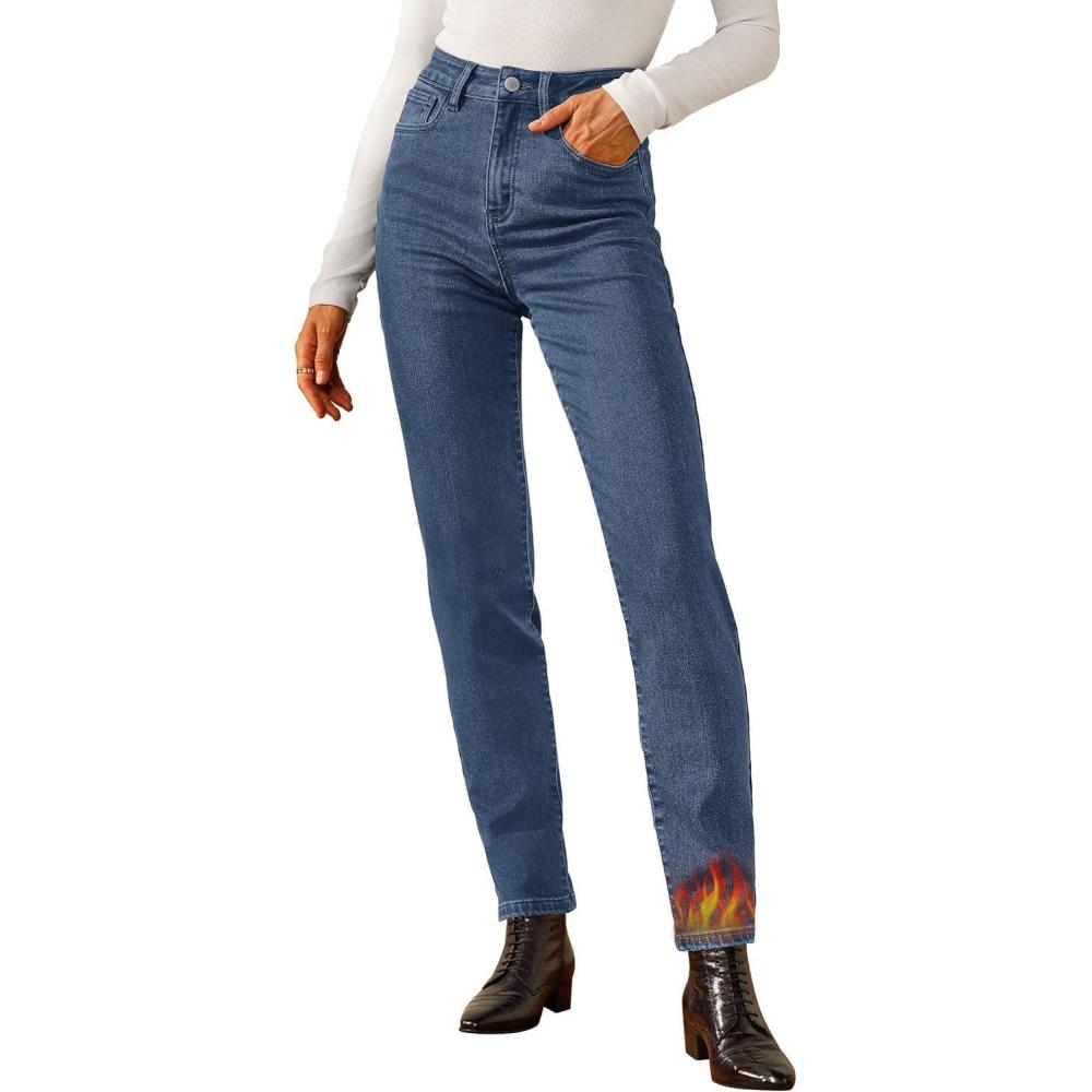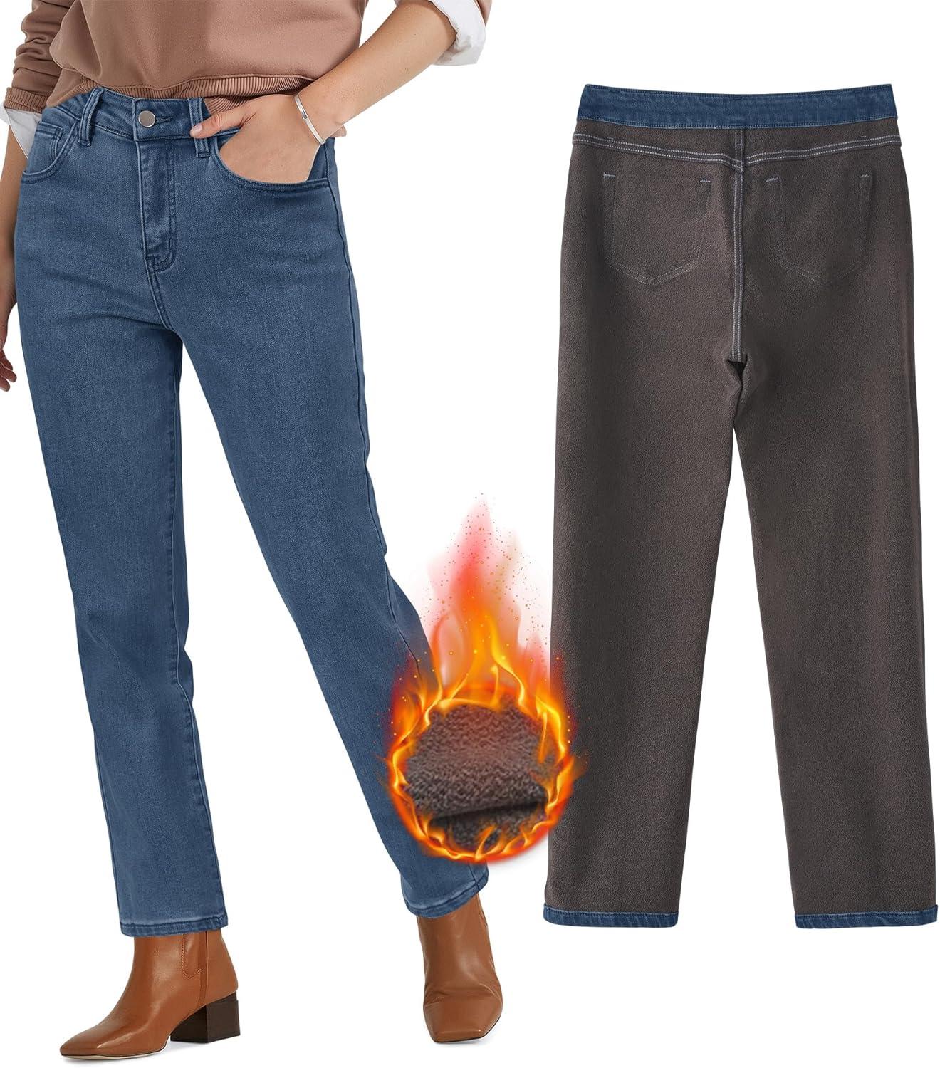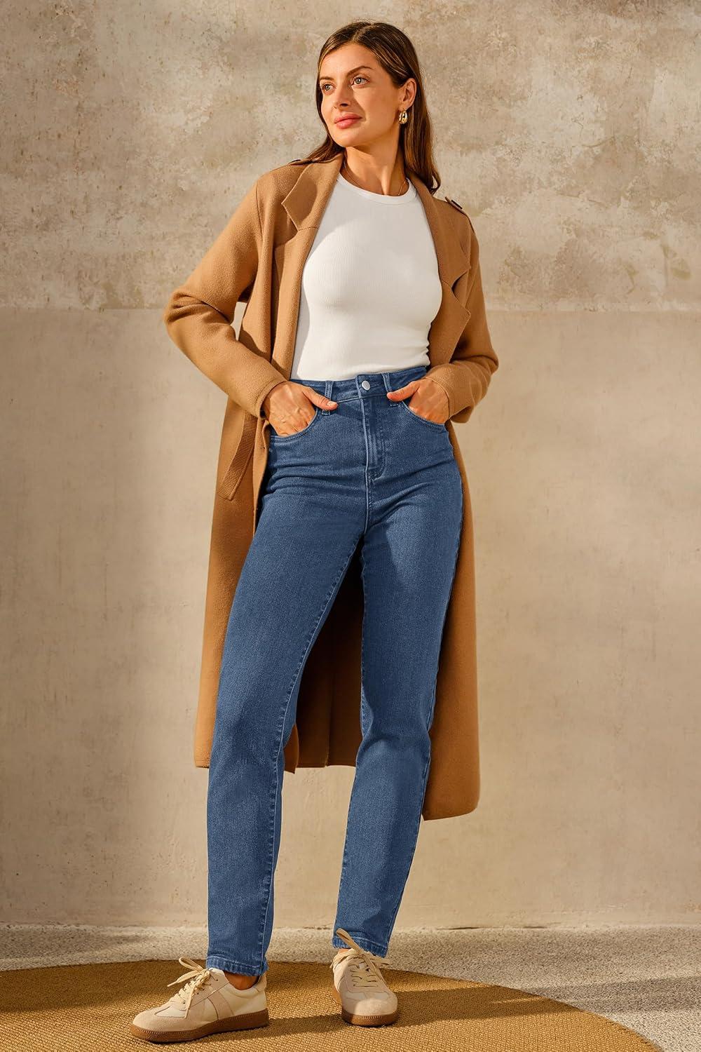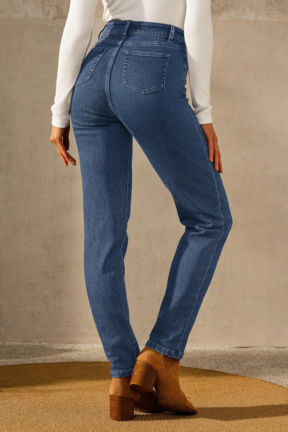 Arach&Cloz Women's Thin Fleece Lined Jeans High Waisted Stretch Warm Straight Leg Pants 2025(Blue)