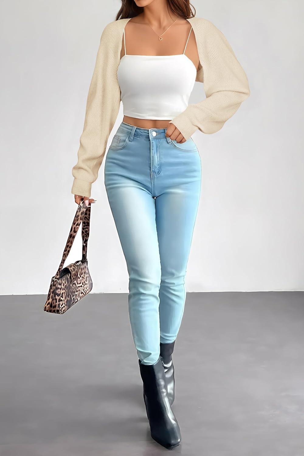 Arach&Cloz Women's Wool Blend Bolero Shrug Fall Fashion Cropped Cardigans 2025(Apricot)