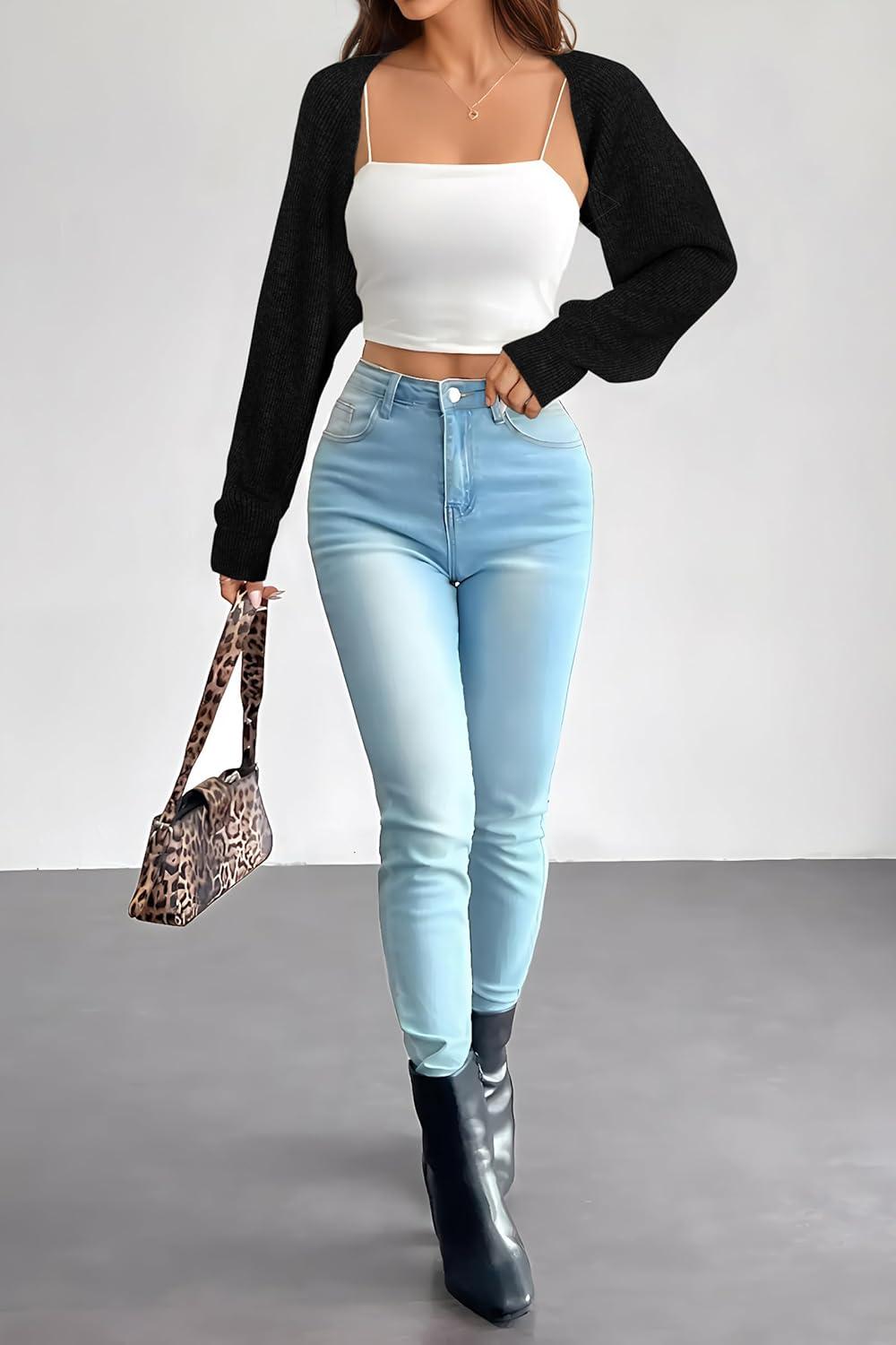 Arach&Cloz Women's Wool Blend Bolero Shrug Fall Fashion Cropped Cardigans 2025(Black)