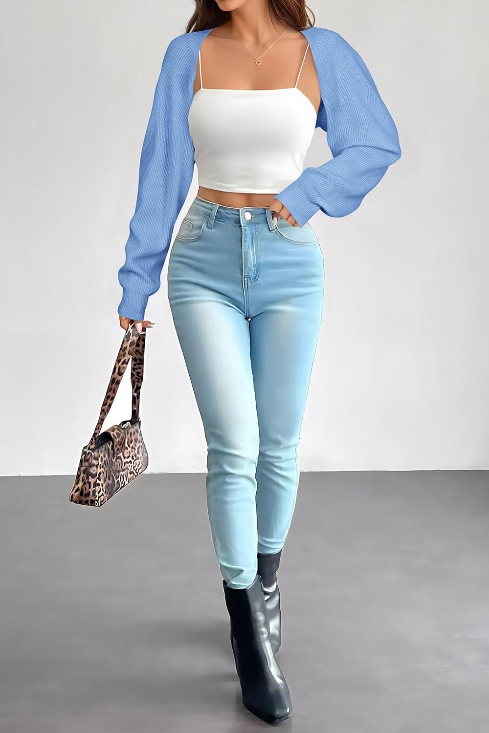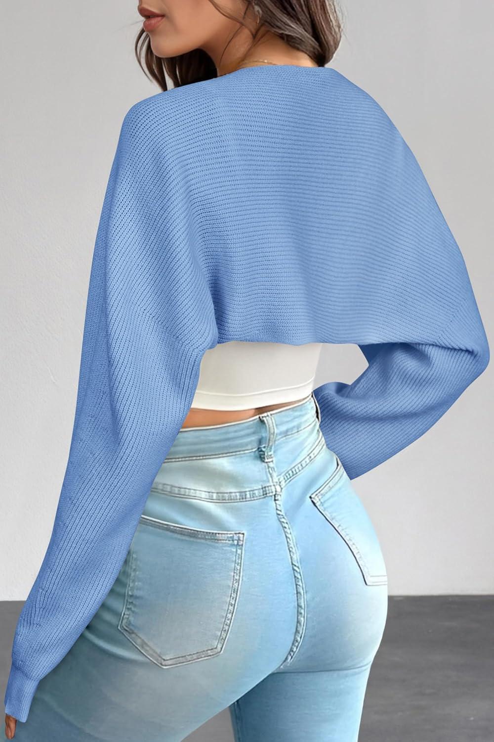Arach&Cloz Women’s Wool Blend Bolero Shrug Fall Fashion Cropped Cardigans 2025(Light Blue)