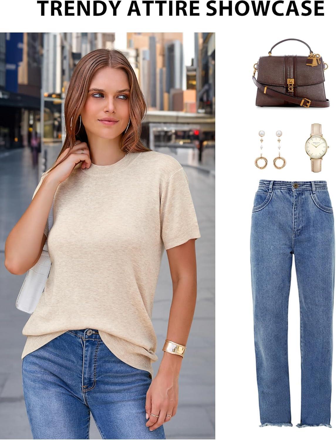 Arach&Cloz Women’s Wool Blend Business Casual Essential Fall Layering Pullover Sweaters(Apricot)