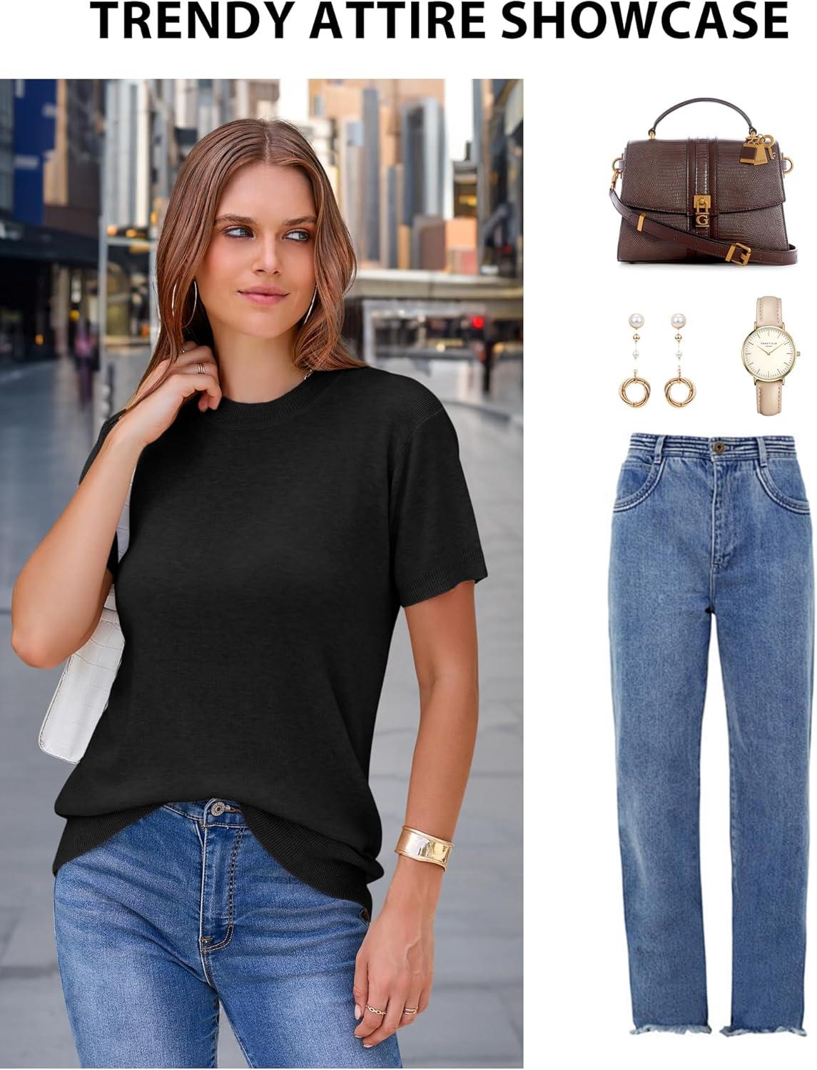 Arach&Cloz Women's Wool Blend Business Casual Essential Fall Layering Pullover Sweaters(Black)