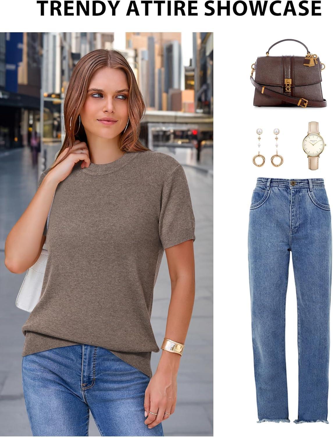 Arach&Cloz Women’s Wool Blend Business Casual Essential Fall Layering Pullover Sweaters(Coffee)
