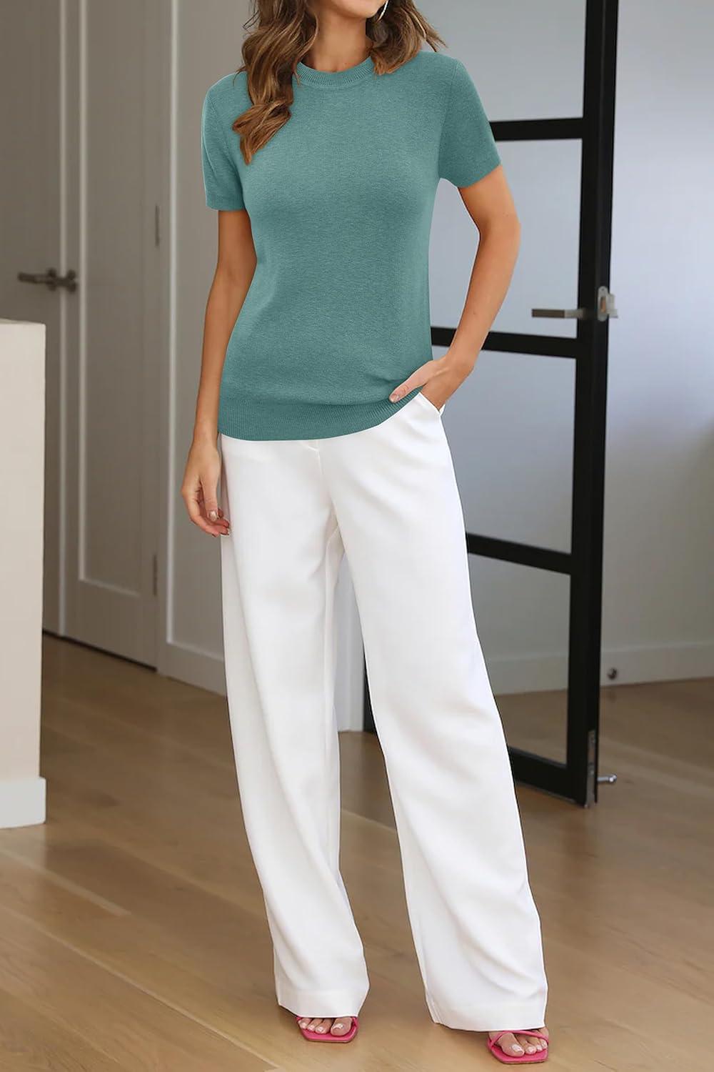 Arach&Cloz Women's Wool Blend Business Casual Essential Fall Layering Pullover Sweaters(Lake Blue)
