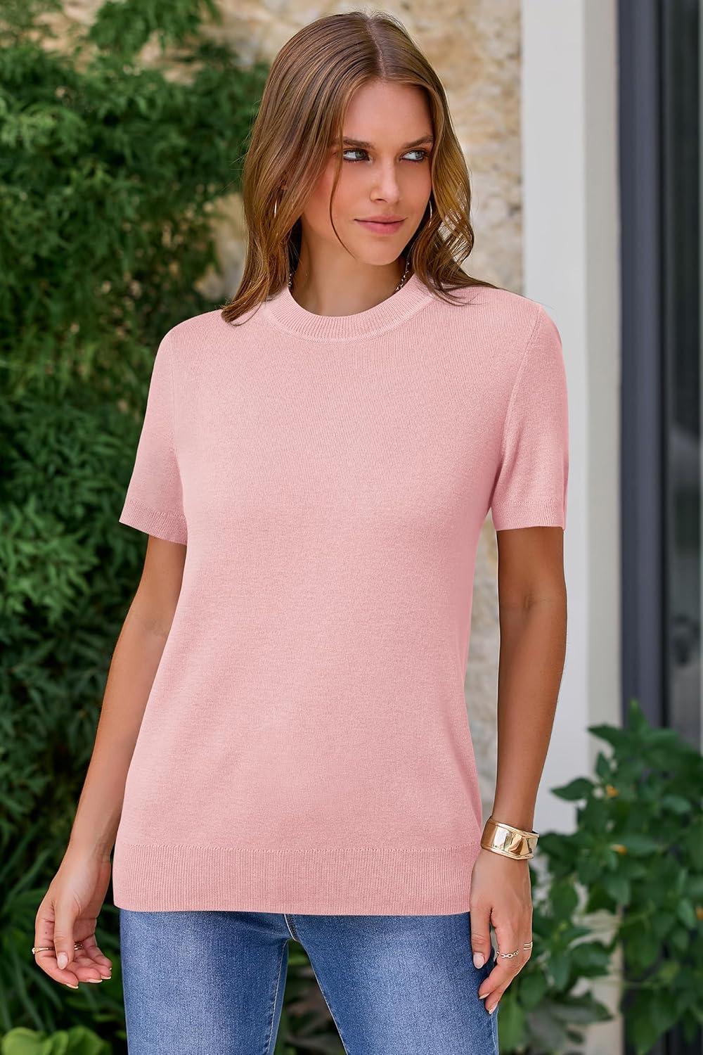 Arach&Cloz Women’s Wool Blend Business Casual Essential Fall Layering Pullover Sweaters(Light Pink)