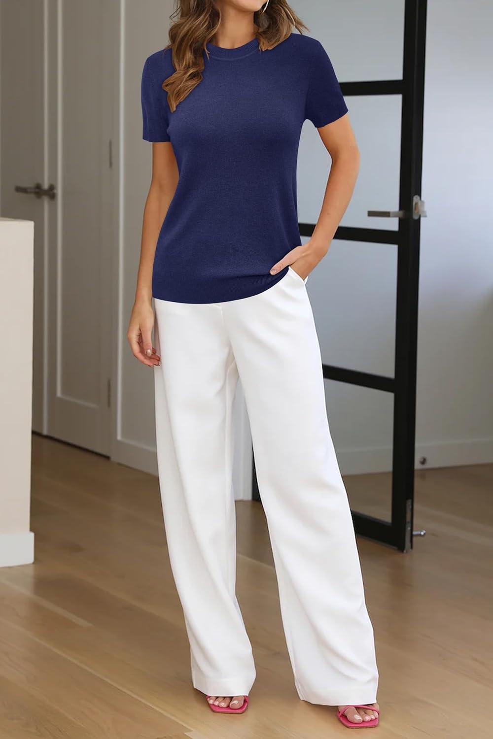 Arach&Cloz Women's Wool Blend Business Casual Essential Fall Layering Pullover Sweaters(Navy Blue)