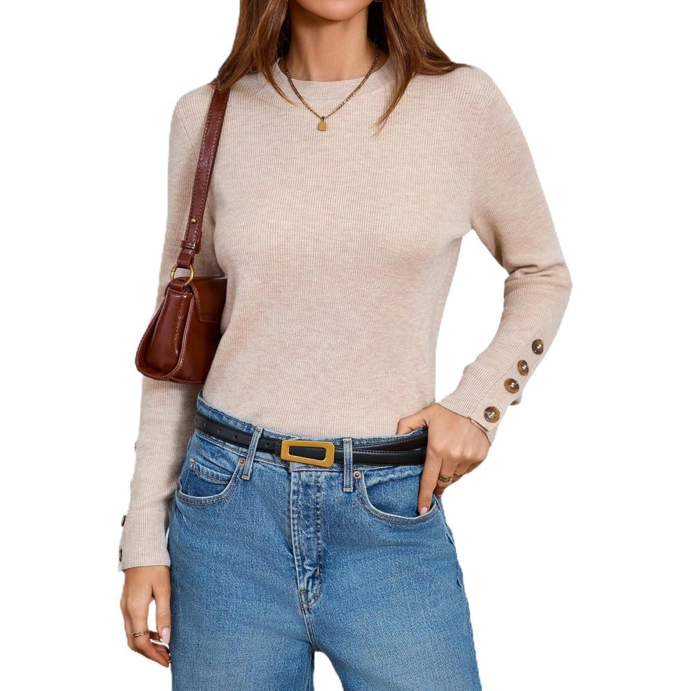 Arach&Cloz Women’s Wool Blend Button-Cuff Fall Fashion Casual Sweaters(Apricot)