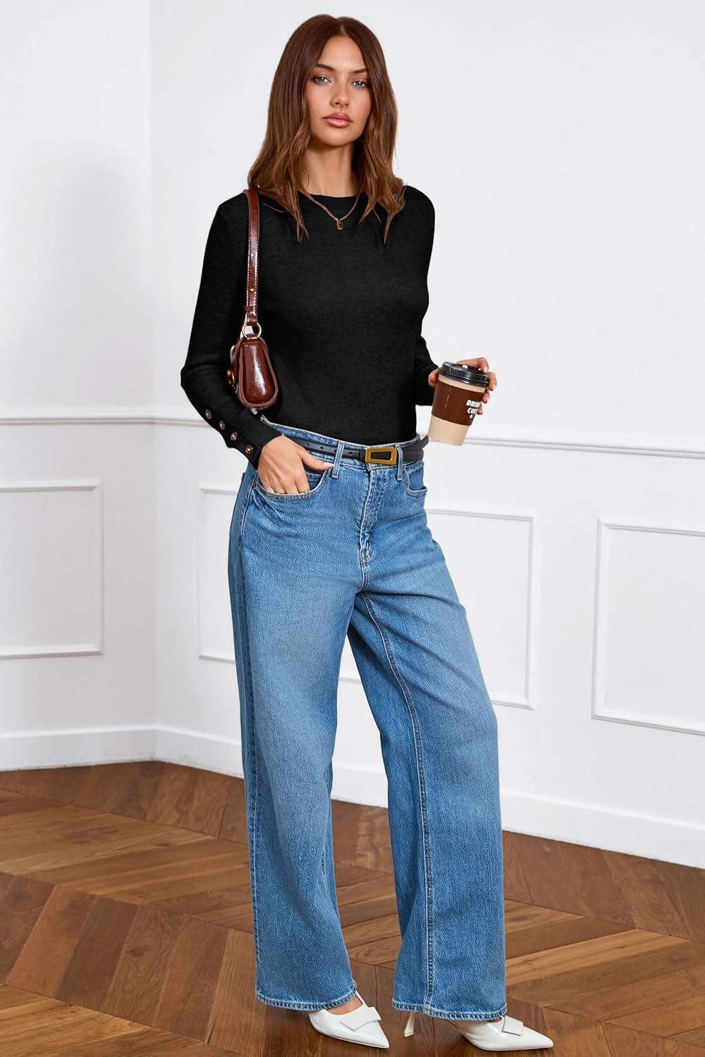 Arach&Cloz Women’s Wool Blend Button-Cuff Fall Fashion Casual Sweaters(Black)