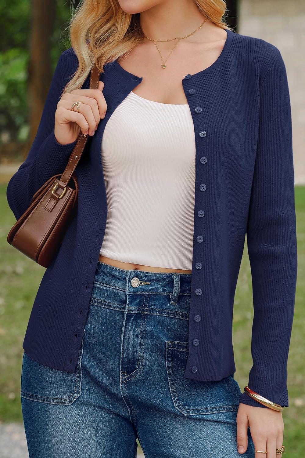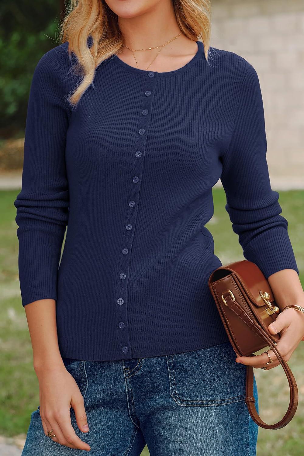 Arach&Cloz Women's Wool Blend Button Up Spring Business Cardigan Tops Outfits 2026(Navy)