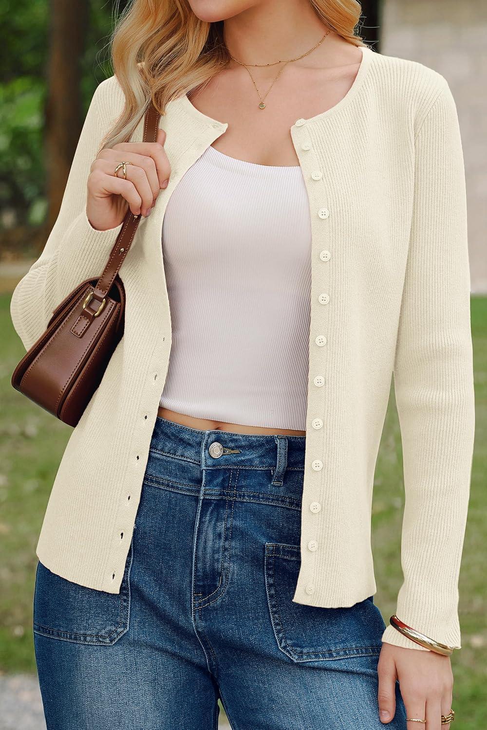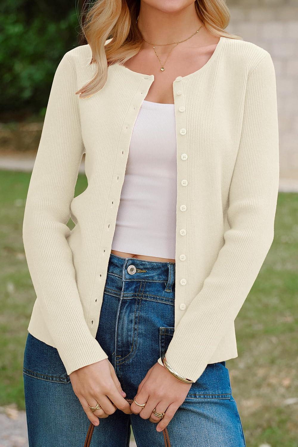 Arach&Cloz Women's Wool Blend Button Up Spring Business Cardigan Tops Outfits 2026(White)