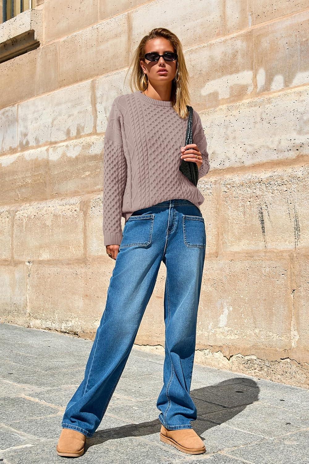 Arach&Cloz Women’s Wool Blend Cable Knit Fall Winter Chunky Oversized Sweaters 2025(Navy)