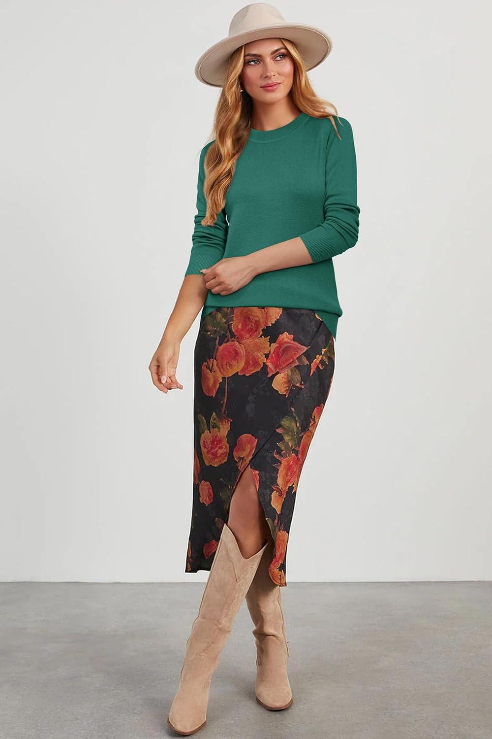 Arach&Cloz Women's Wool Blend Classic Crew Neck Casual Fall Sweaters(A-dark Green)